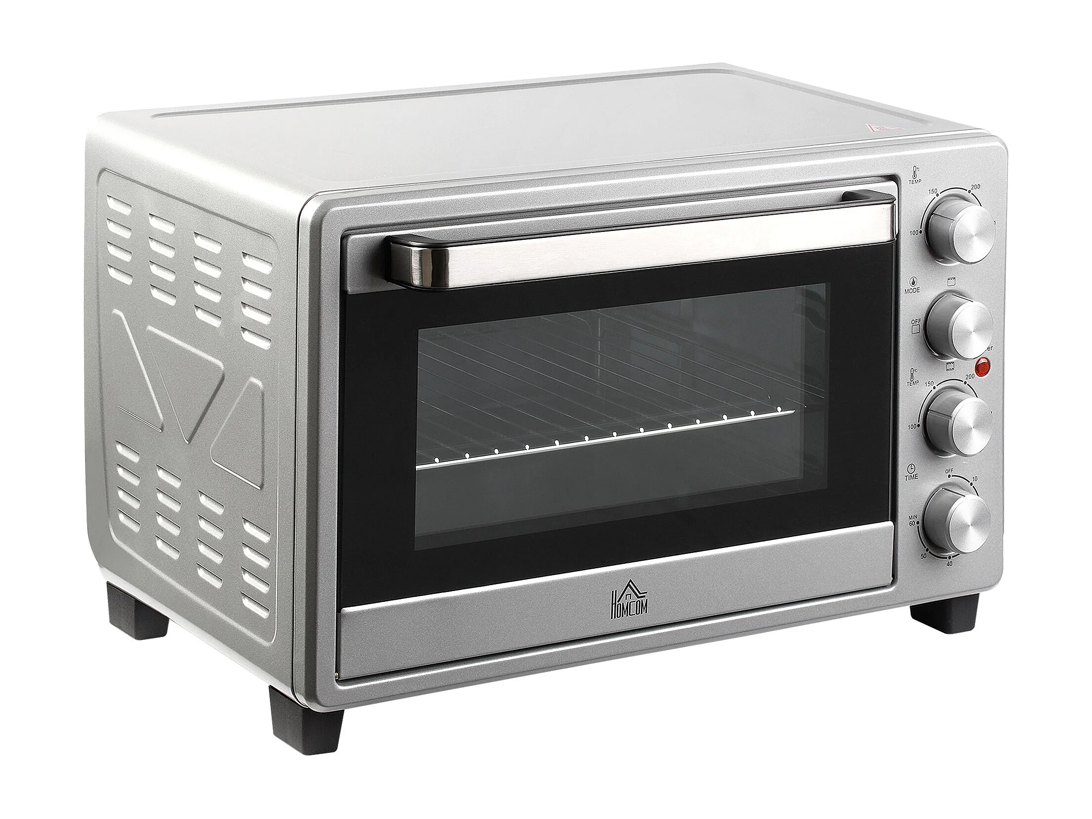 Horno eléctrico de sobremesa Andrómeda Homcom 1600W 3 modos de cocción 32L plata 33,5x38,1x52 cm