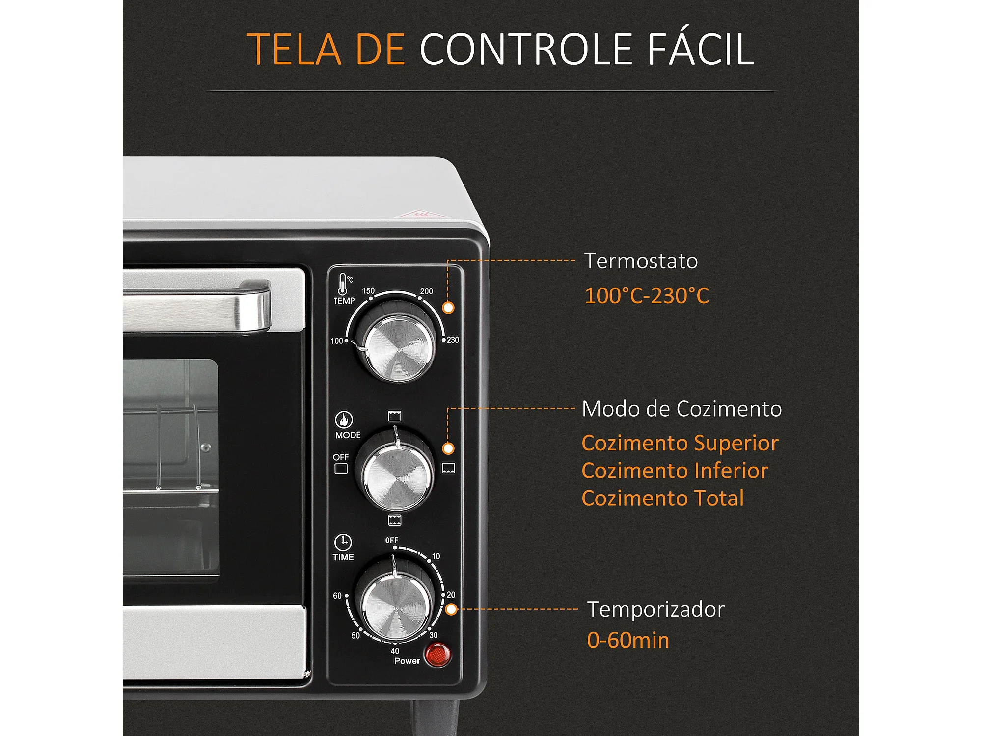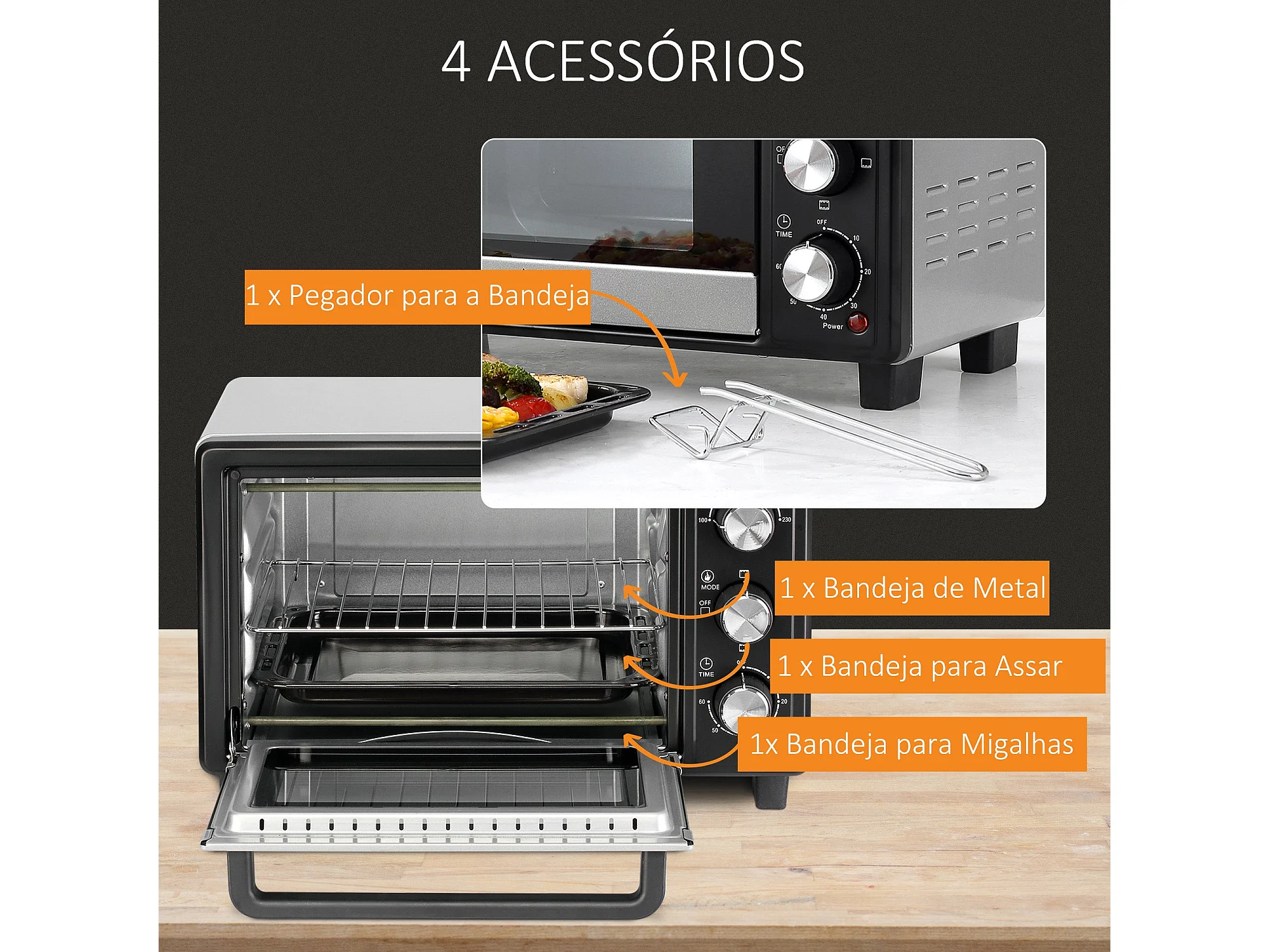 Horno eléctrico de sobremesa Homcom Casiopea 1400W portátil 16L plata 28,1x32x44 cm