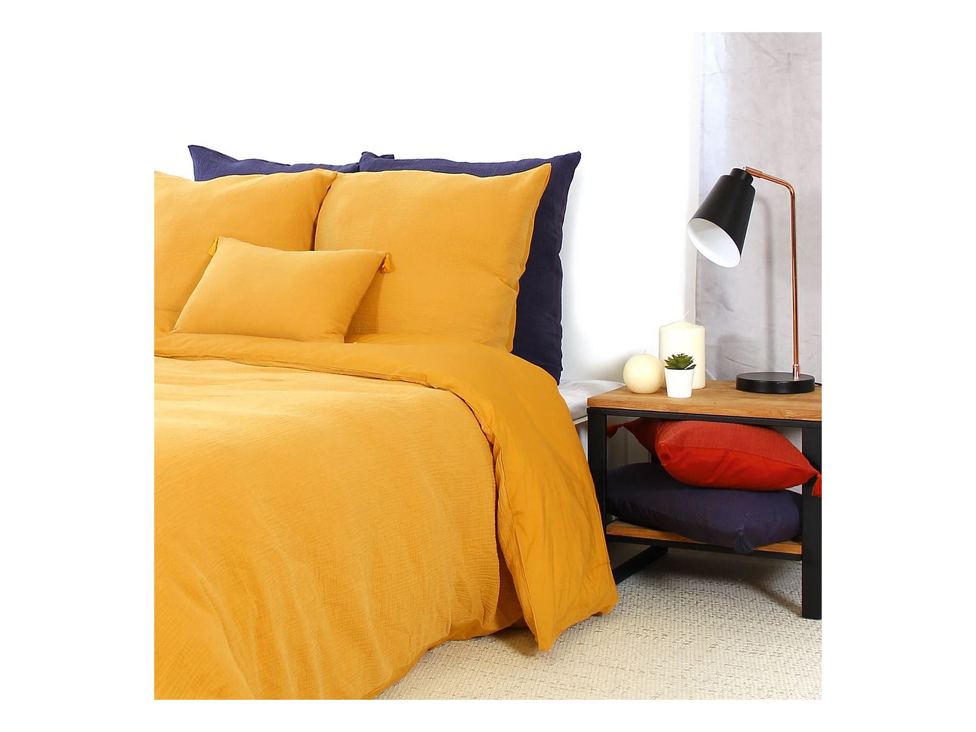 Set funda nórdica de algodón 57 hilos 240x220 cm THALES mostaza