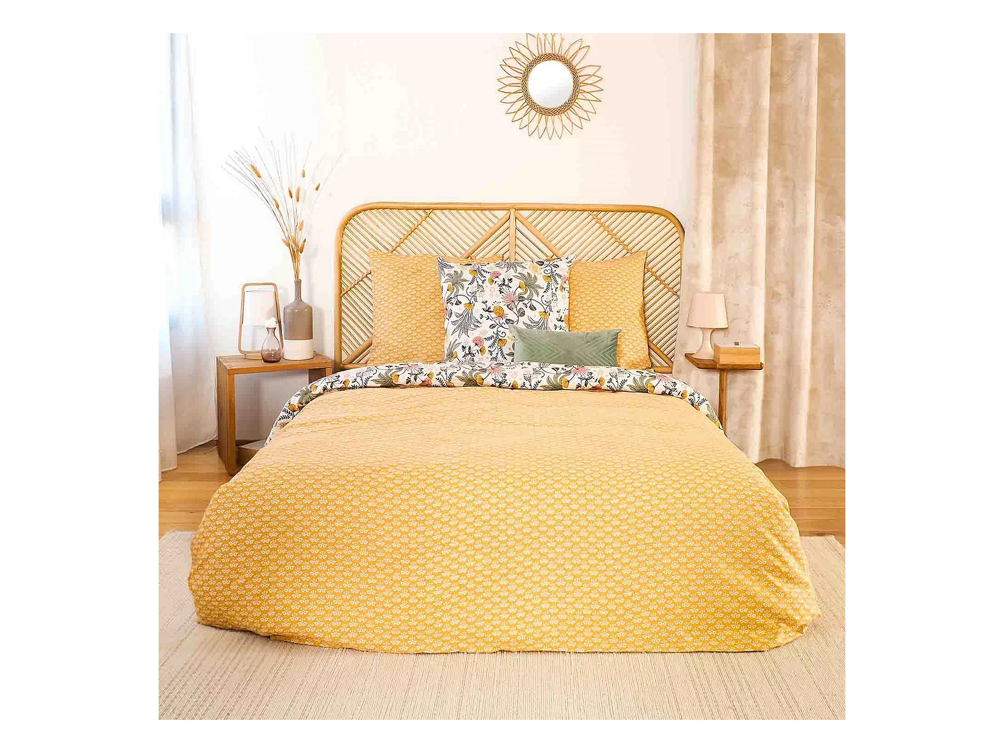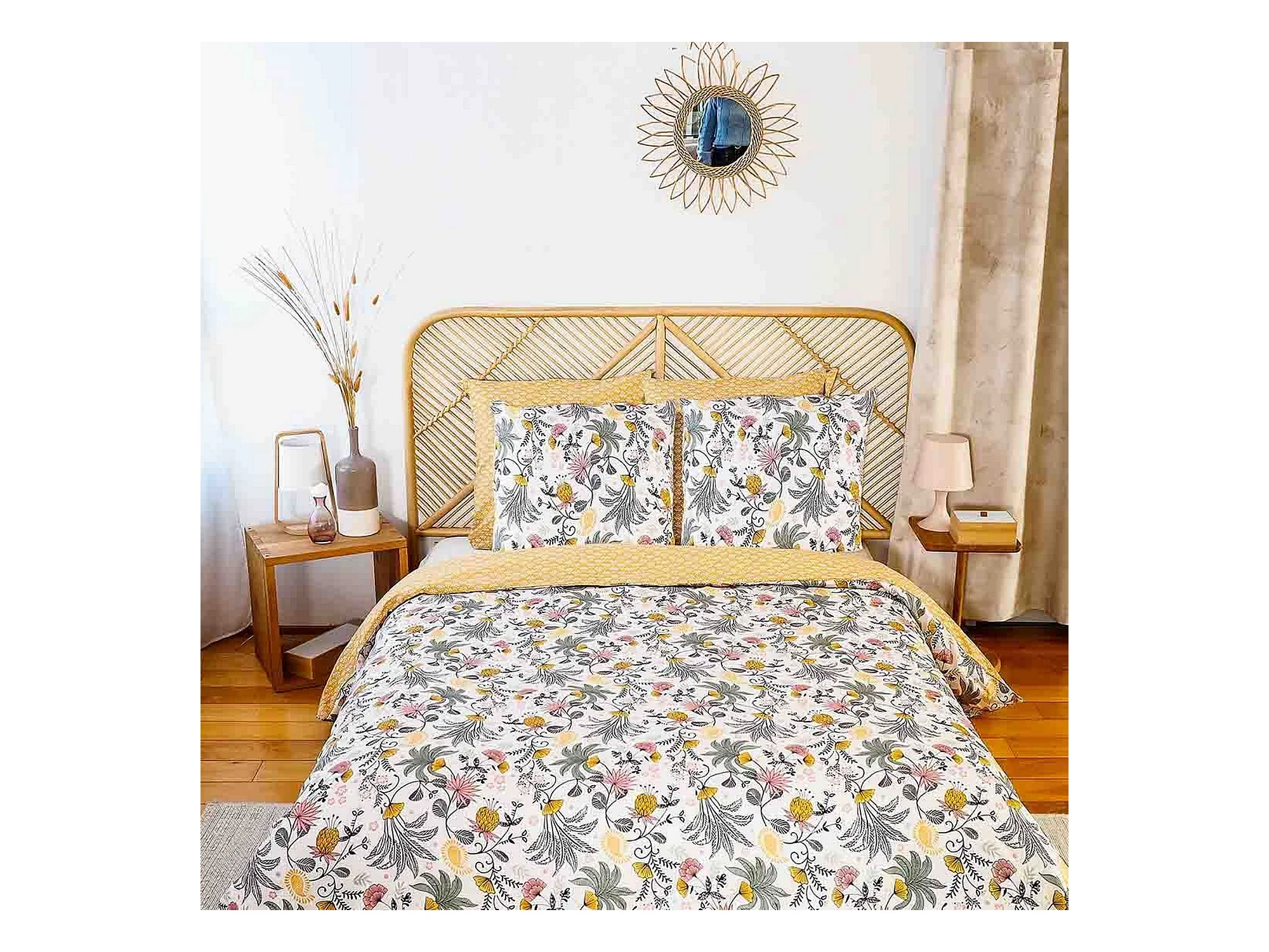 Juego de cama foral en satén de algodón bio 240 x 220 cm