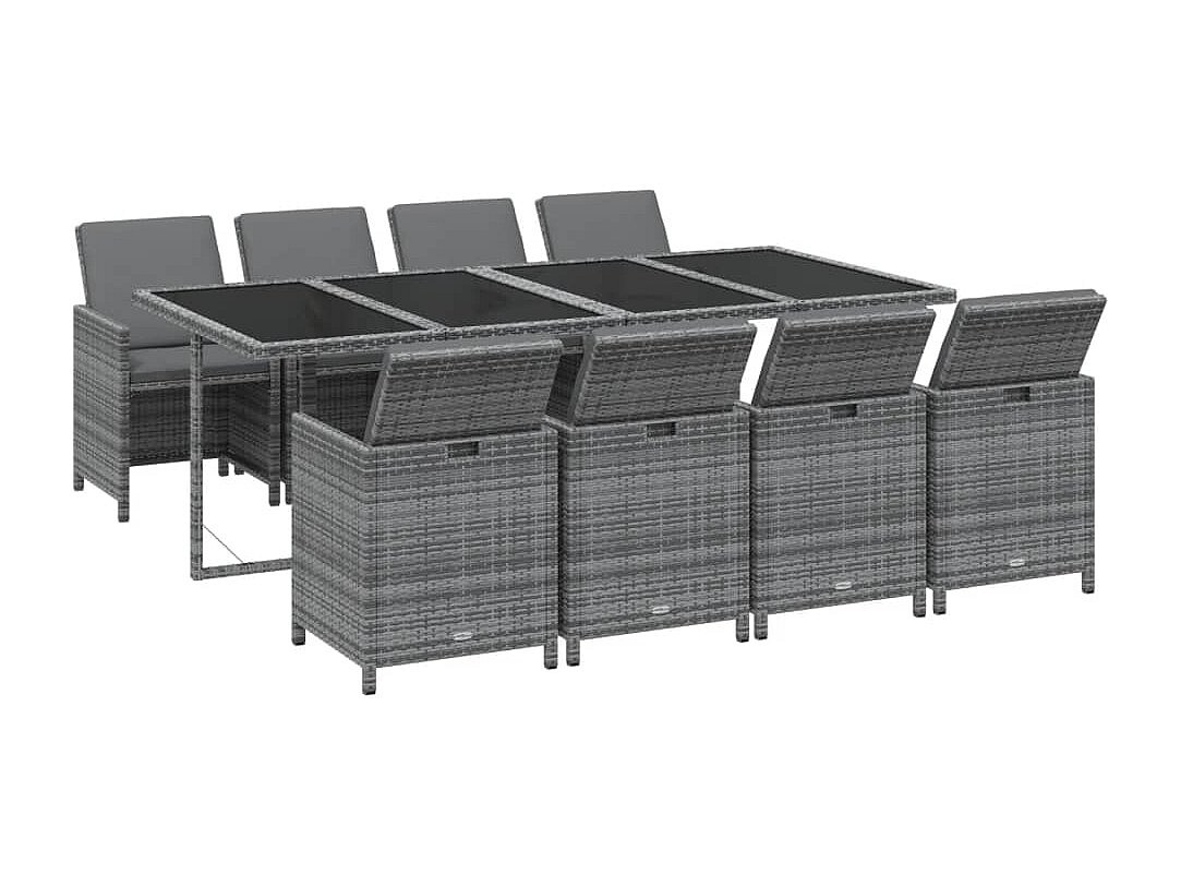 Hugo Set comedor jardín 9 pzas y cojines ratán sintético gris
