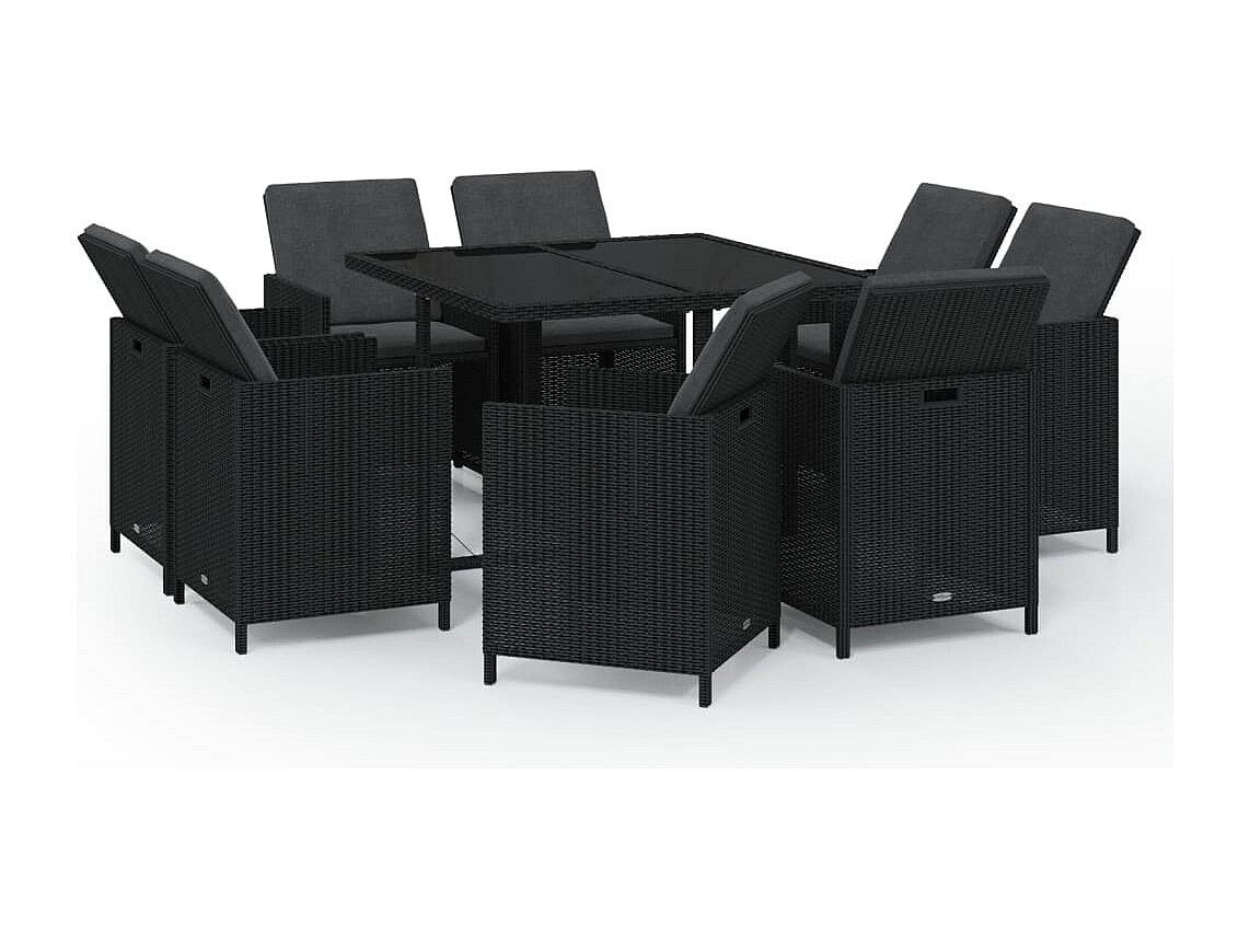 Emory Set de comedor de jardín 9 pzas y cojines ratán sintético negro