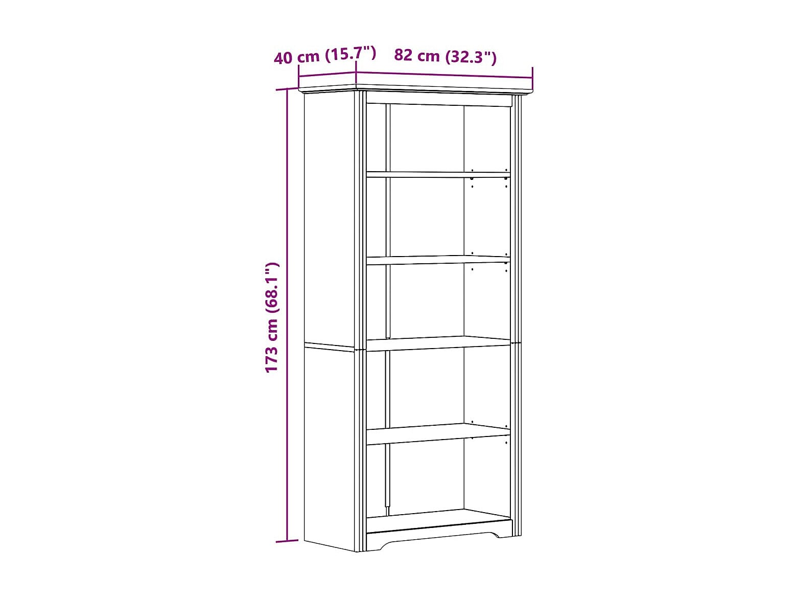 Esta clásica librería con 5 estantes, de diseño francés, es un complemento decorativo y práctico para la decoración de la casa. Madera maciza de pino: La madera maciza de pino es un bonito material natural. La madera de pino tiene vetas rectas, y los nudos dan al material su característico aspecto rústico. Fabricado en madera maciza de pino, la estantería para libros es robusto y estable.Amplio espacio de almacenaje: Esta práctica librería tiene 5 estantes, que proporcionan amplio espacio de almacenaje para tener ordenadas tu colección de libros, revistas y documentos.Ahorro de espacio: Gracias al tamaño compacto, la estantería ahorra espacio y ocupa poco espacio en el suelo pero ofrece un gran espacio de almacenaje.Encantador estilo francés: ¡Añade un inspirador estilo francés a la decoración de la casa! Advertencia:Para evitar que vuelque, este producto debe usarse con el dispositivo de fijación a la pared incluido.