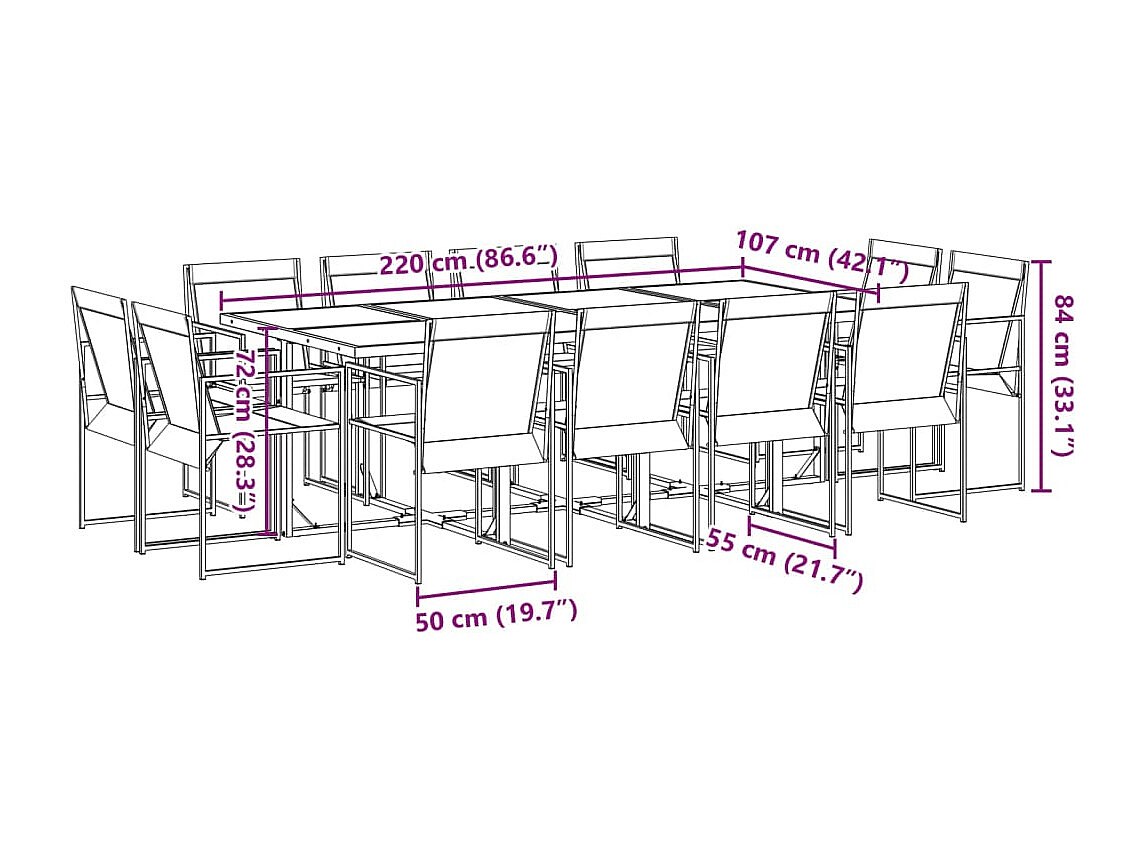Idalou Juego de comedor de jardín 13 piezas textileno negro