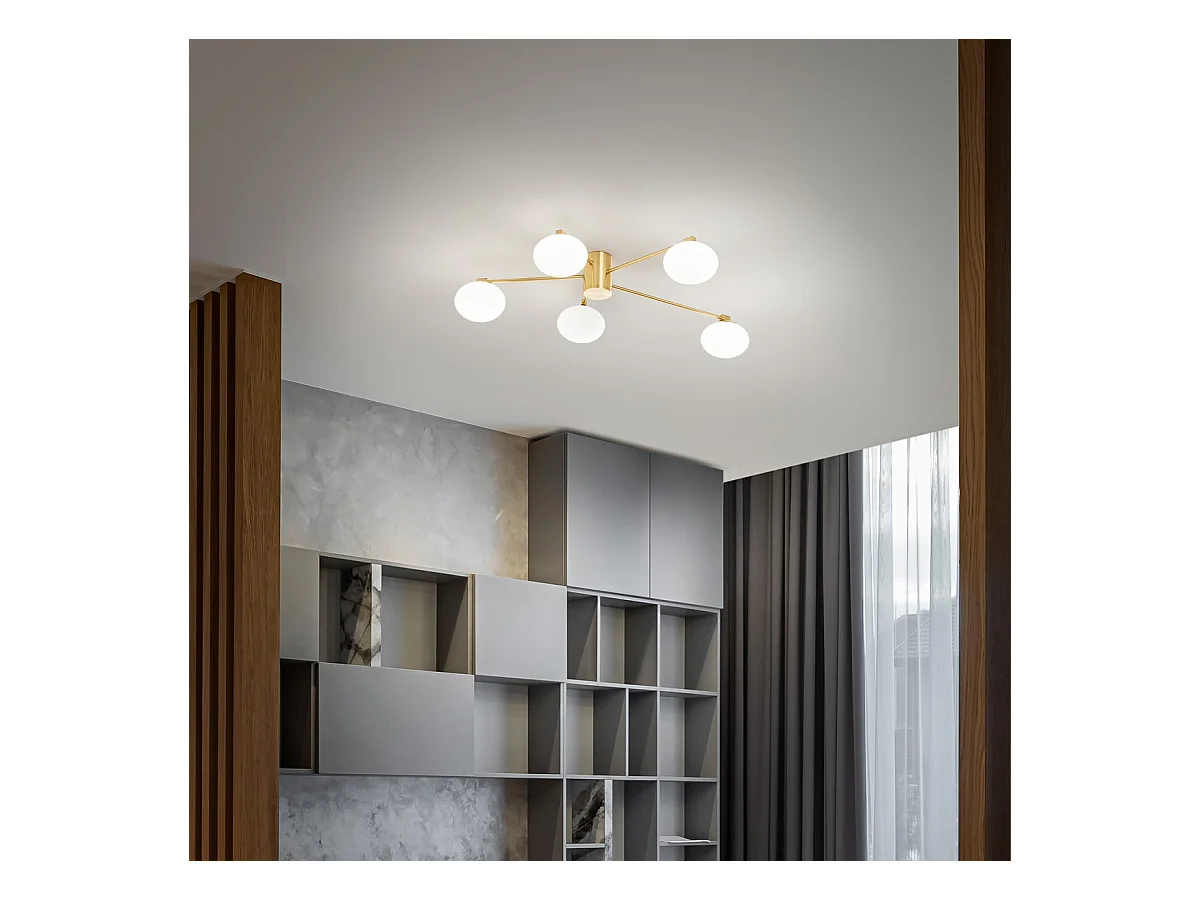Ideal Lux HERMES Plafón Semi Empotrado 5 Luces Globe Multi Brazo Latón