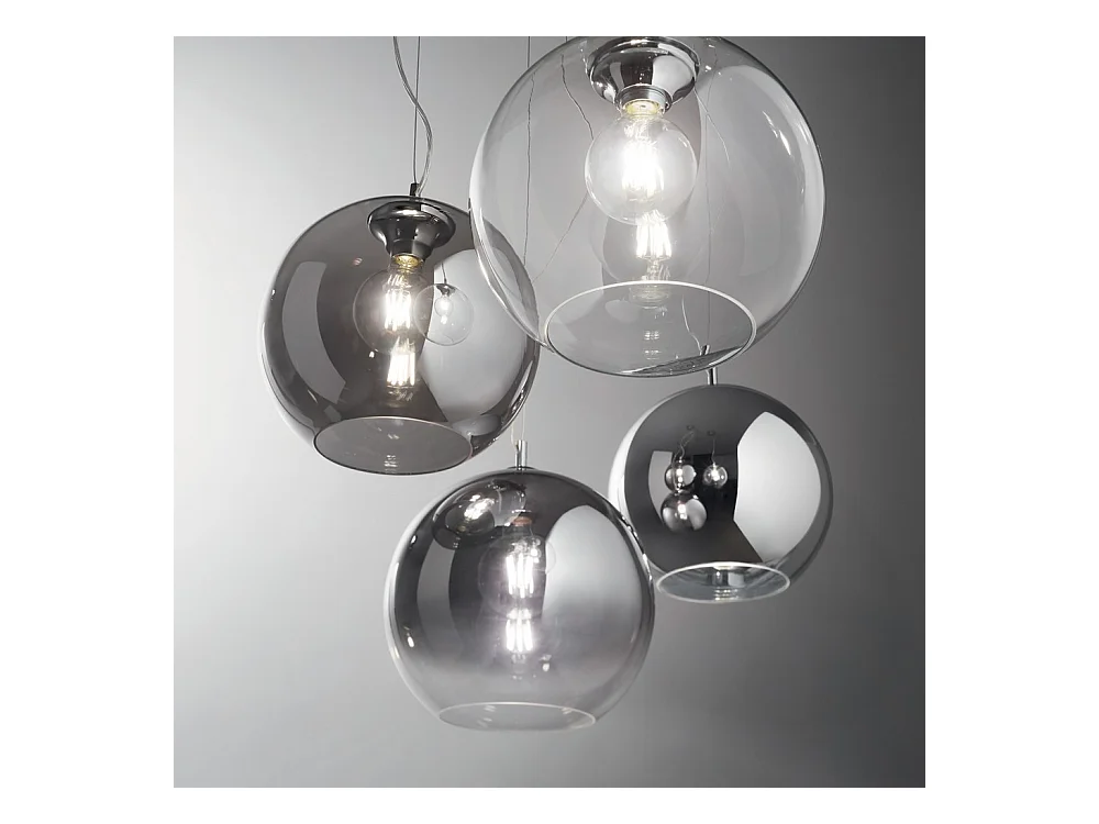 Ideal Lux Discovery Fade - Lámpara colgante de techo de globo pequeño con 1 luz, cromo, E27