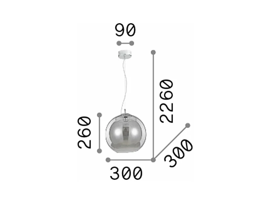 Ideal Lux Mapa Max - Lámpara colgante de techo de globo pequeño con 1 luz, cromo, E27