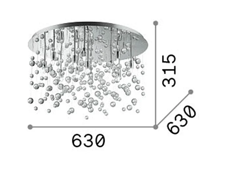 Ideal Lux Neve - 12 luces grandes de vidrio semi soplado con burbujas de techo empotrado, cromo, G9