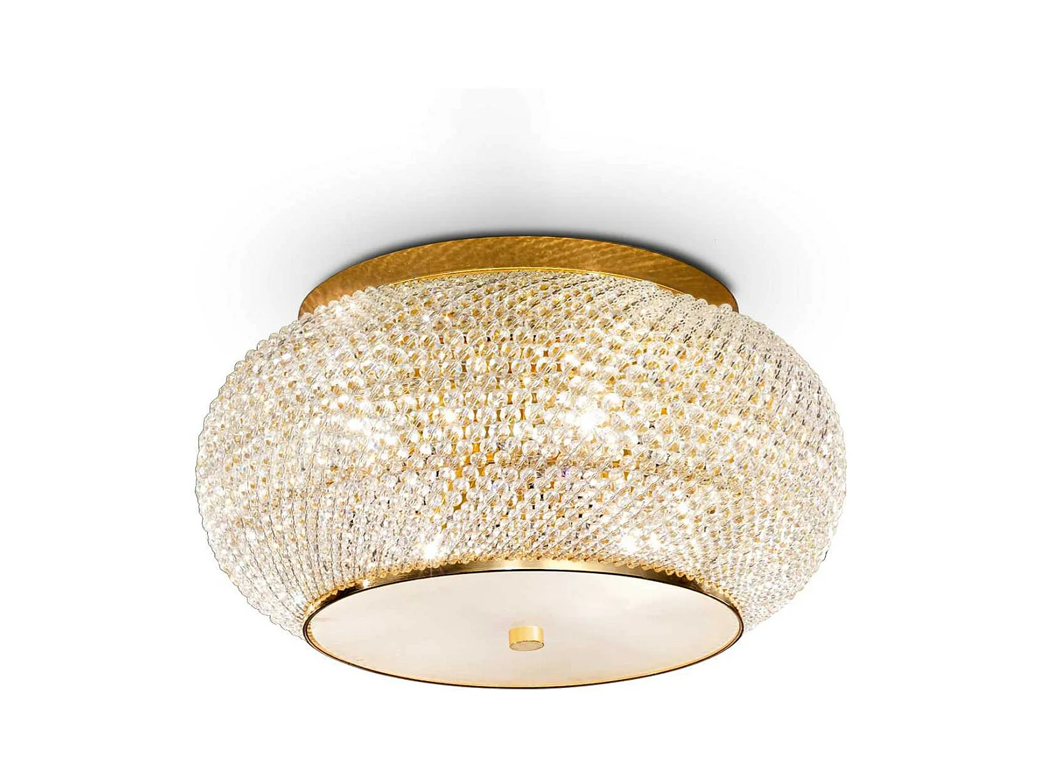 Ideal Lux Pasha' - 6 luces de techo a ras de suelo dorado con cristales, E14