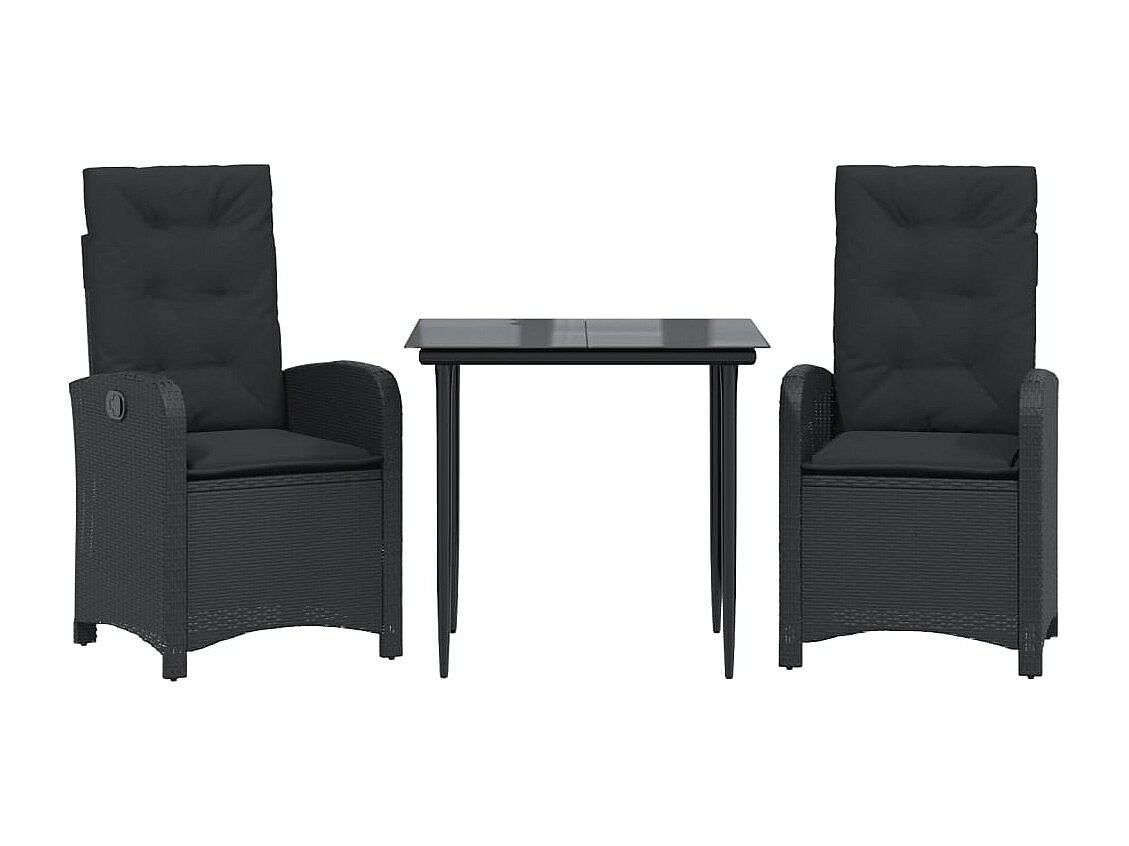 Necdet Set comedor de jardín 3 pzas con cojines ratán sintético negro