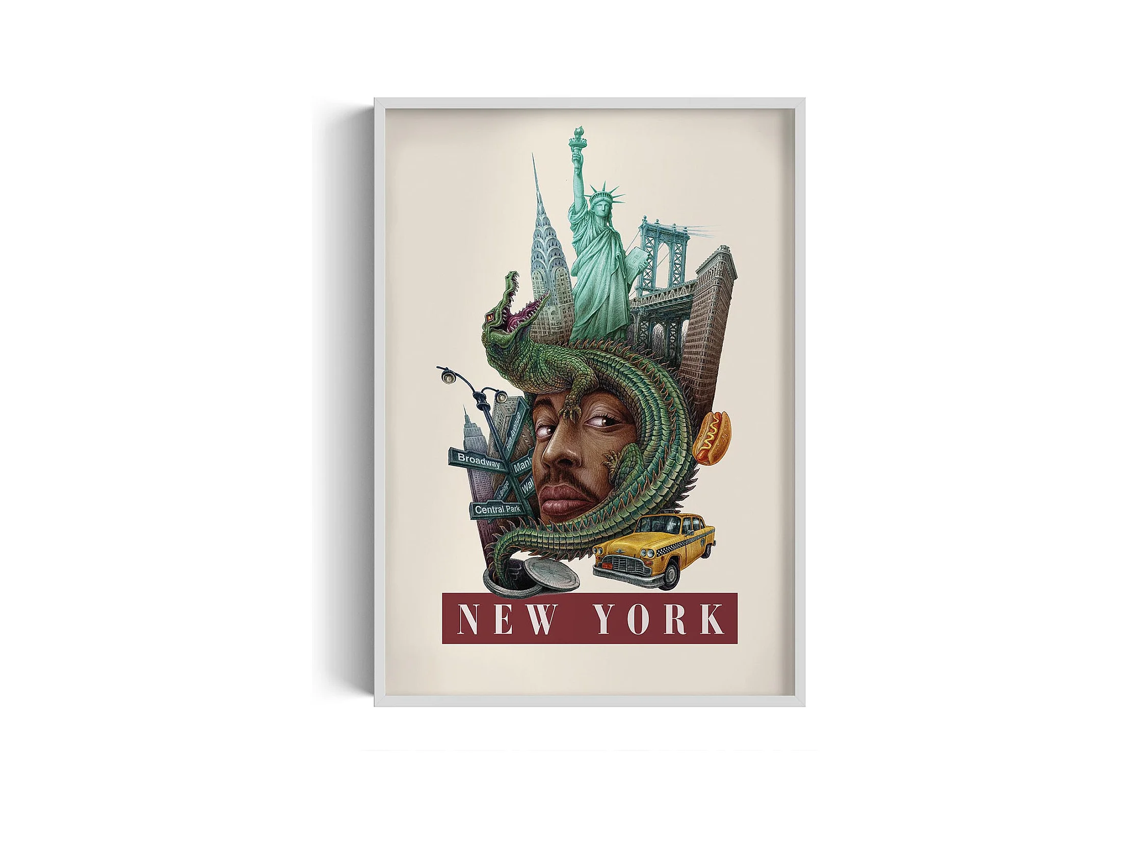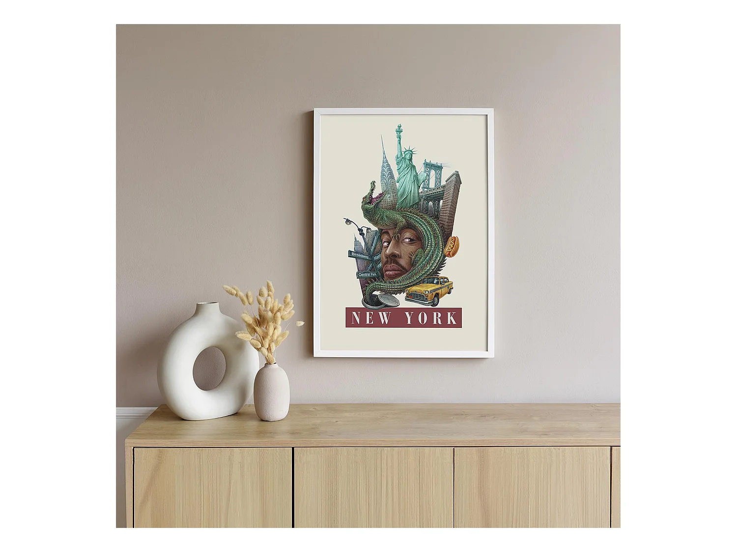 Imagen enmarcada, diseño ciudad americana, arte marco blanco Nueva York, impresión Nueva York 70x100 cm, cartel urbano Nueva York.