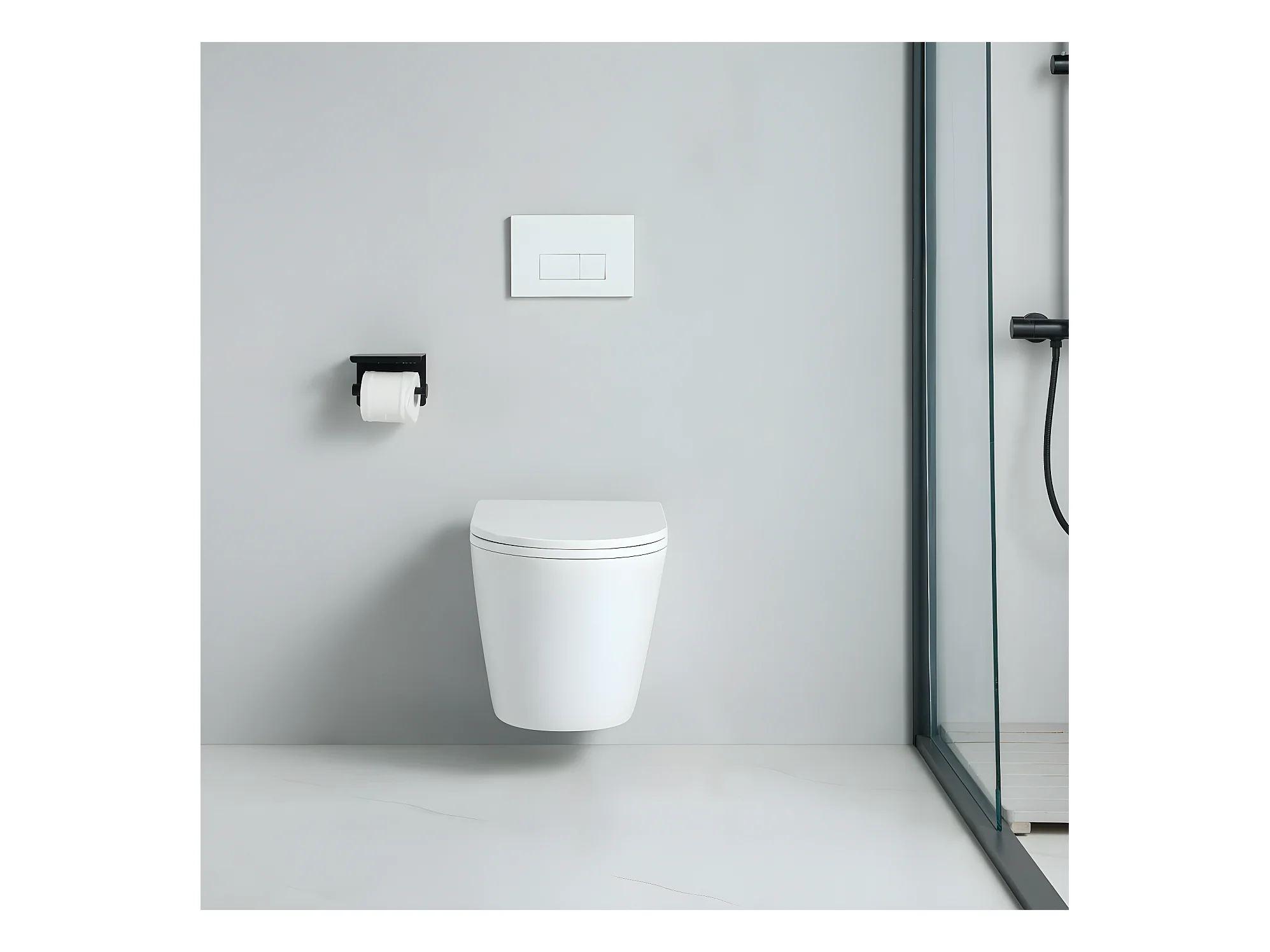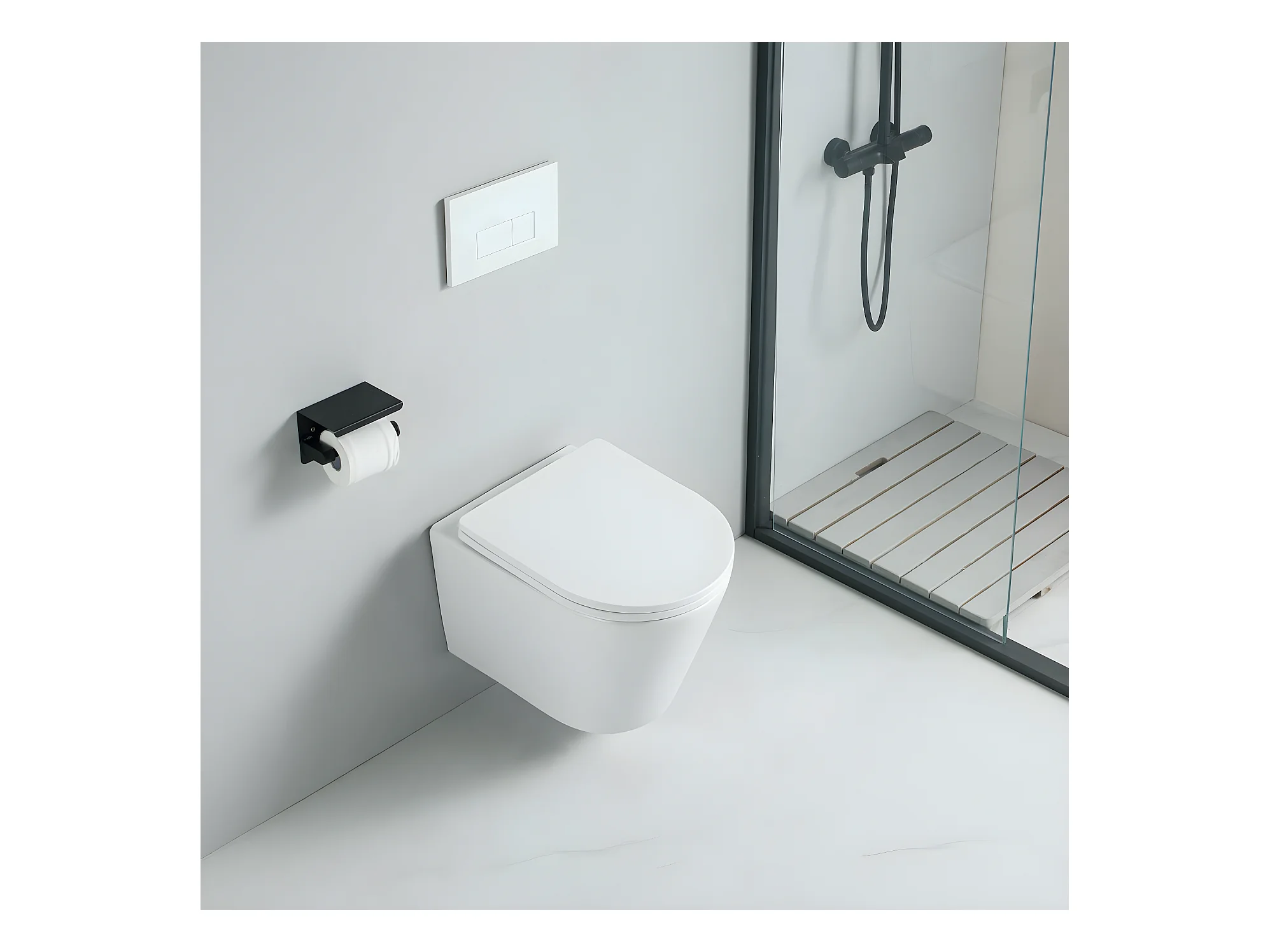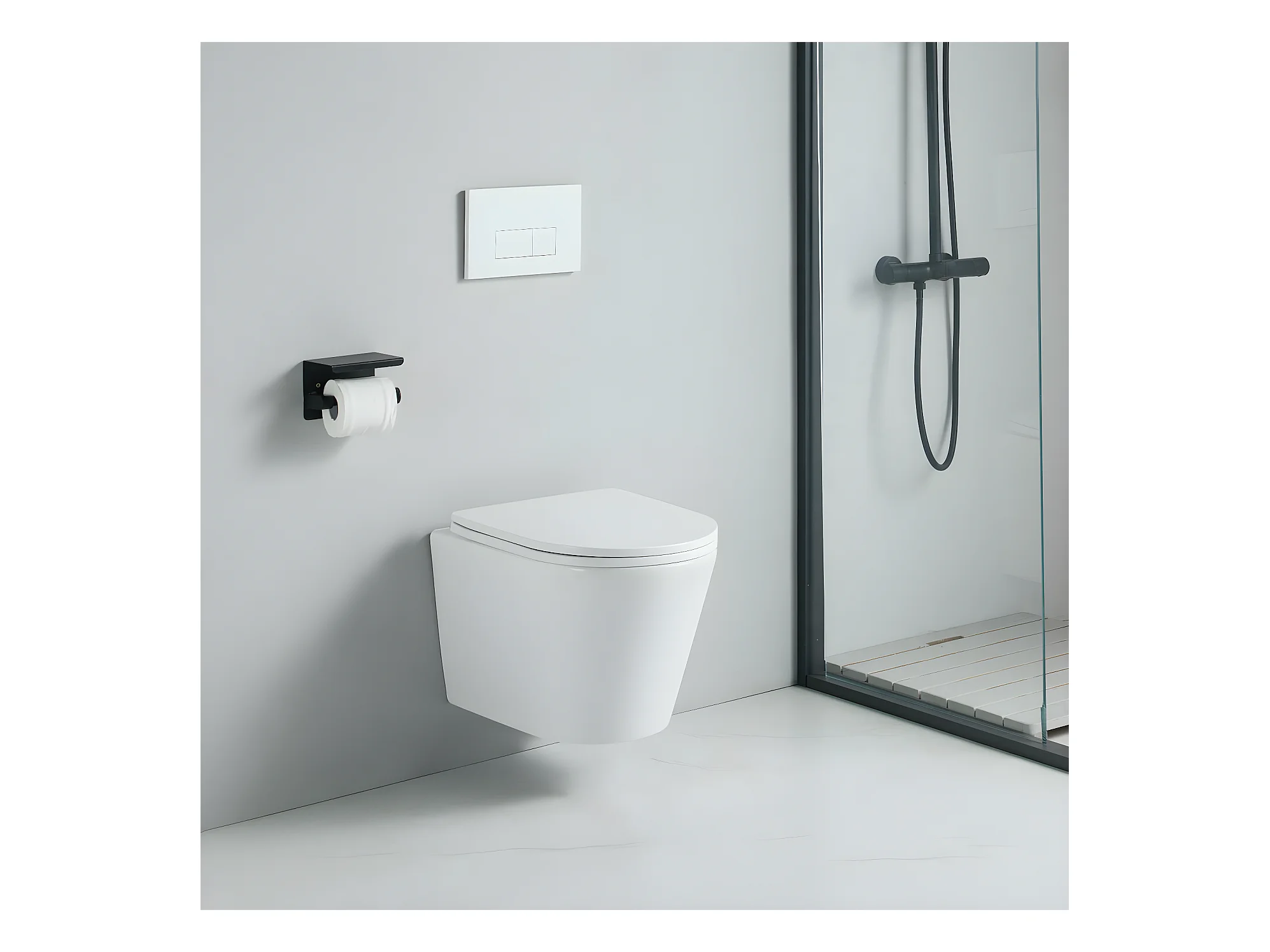 Portarrollos de papel higiénico y escobillero metálico "Sophie" con base en forma de media luna