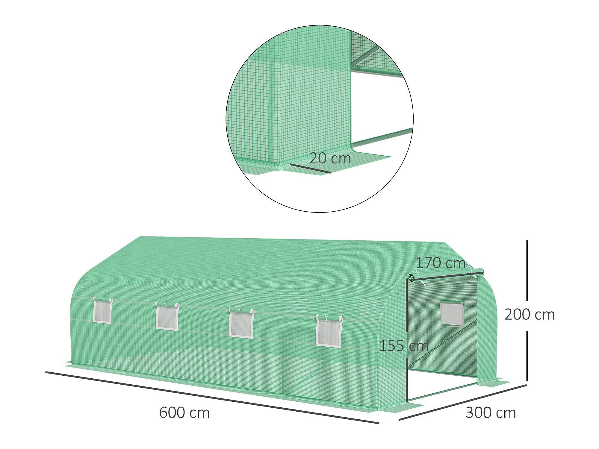 Invernadero de jardín verde 600x300x200cm Outsunny