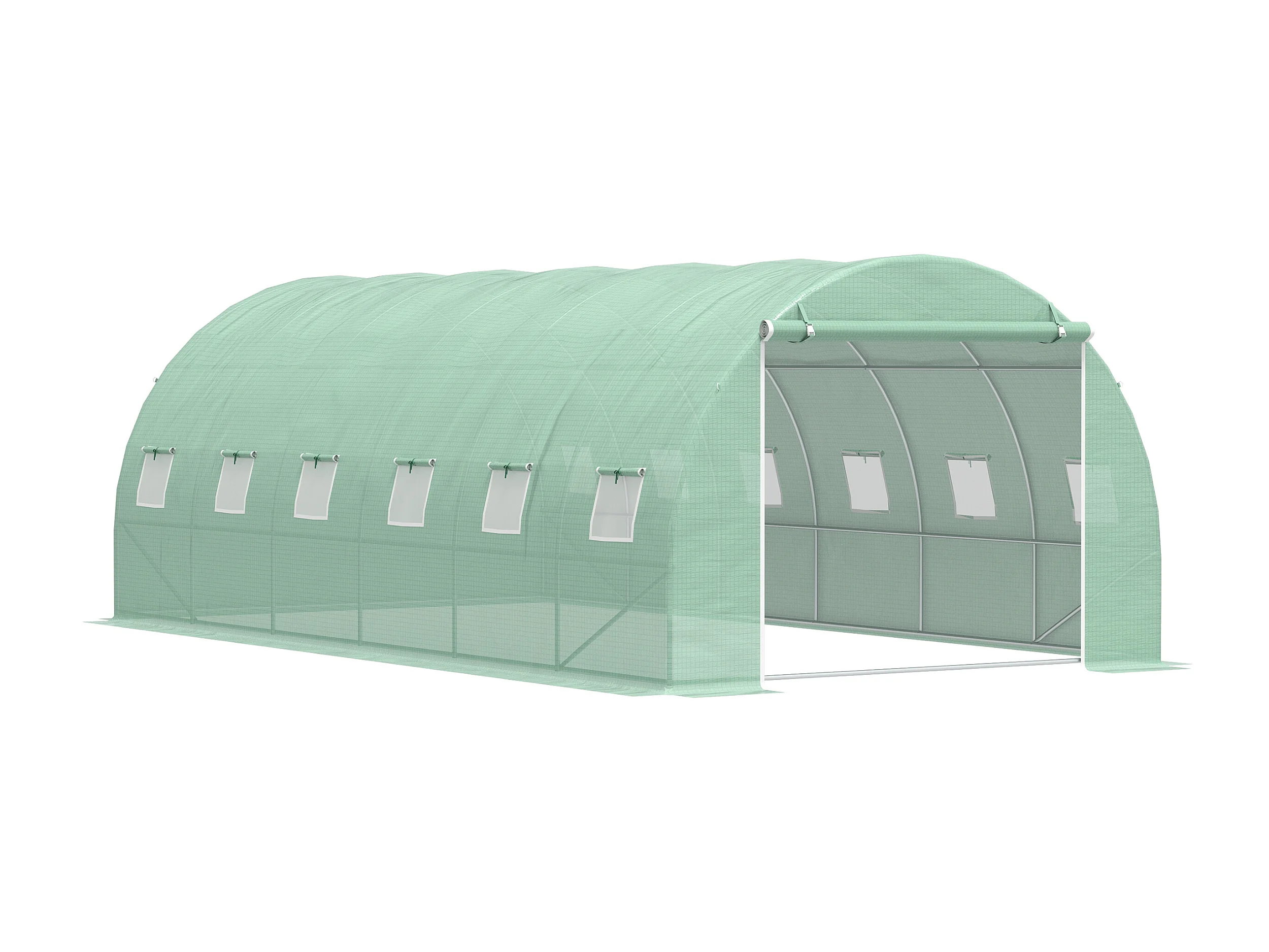 Invernadero Túnel SucceBuy 590x295x198 cm, Invernadero Túnel de Plano, Marco en Acero Galvanizado, Verde