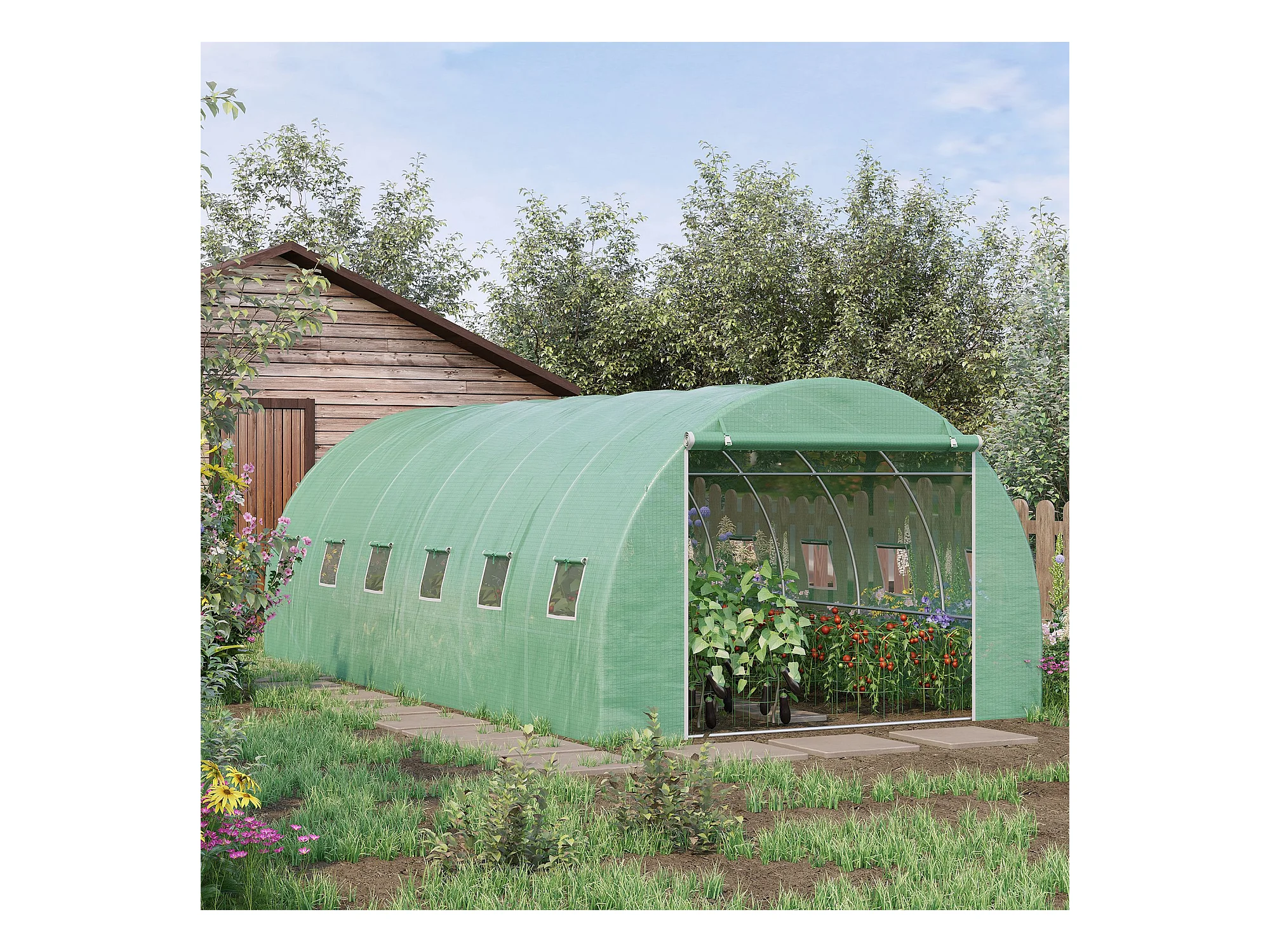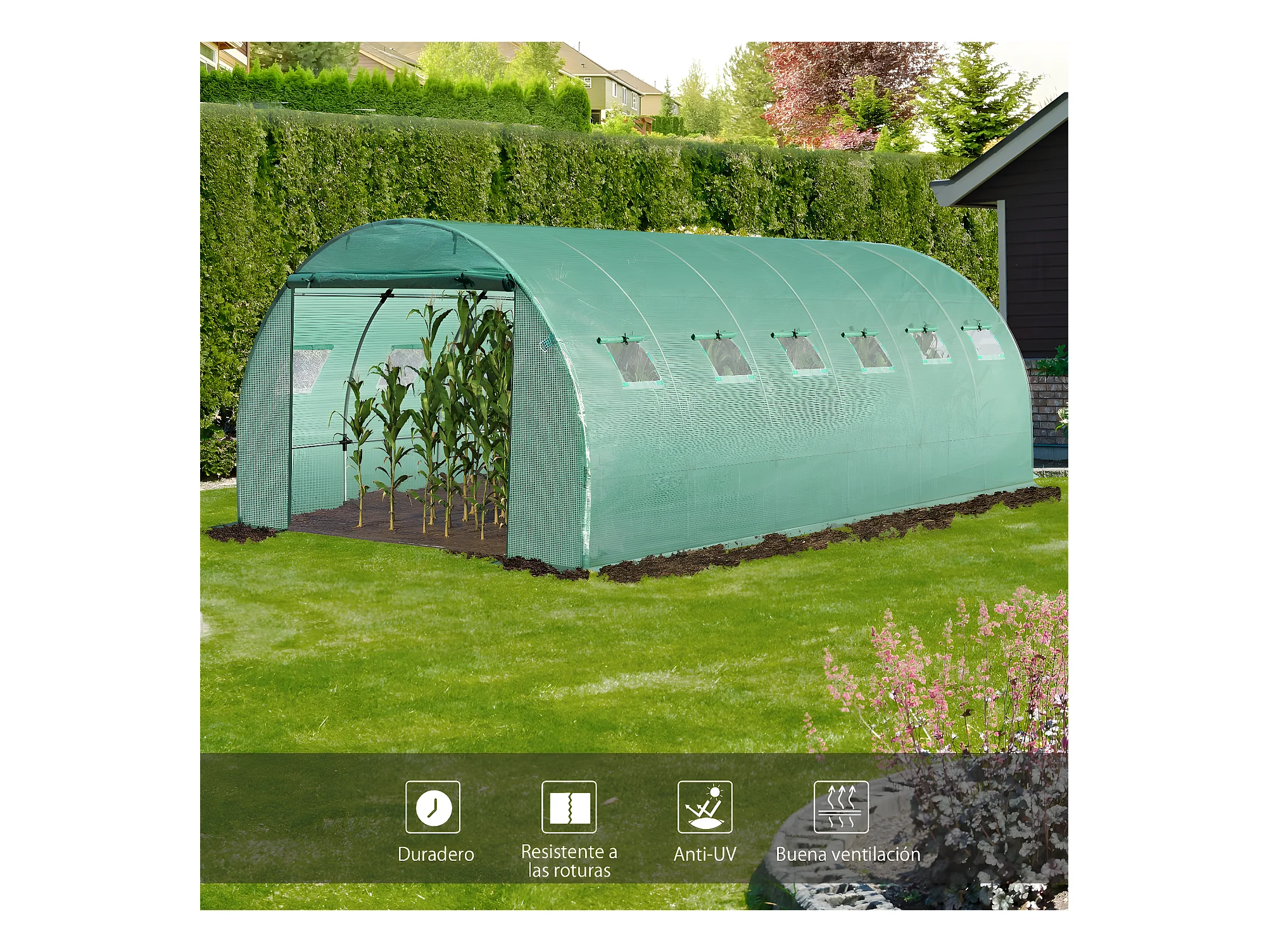 Invernadero Túnel SucceBuy 890x295x198 cm, Marco en Acero Galvanizado, Cubierta en PE, Verde
