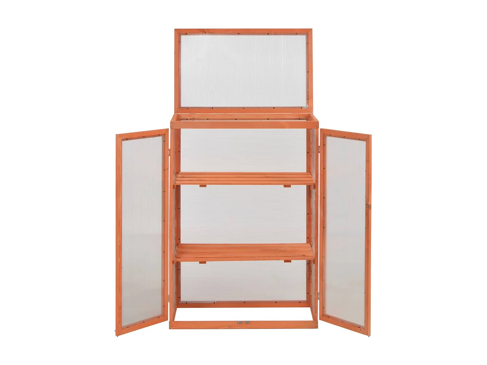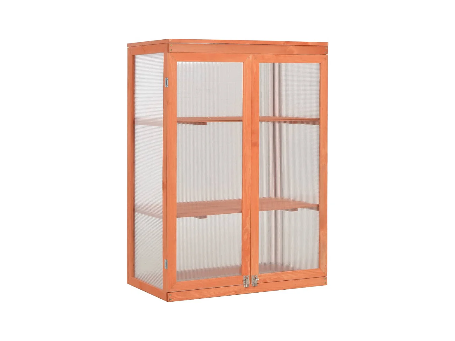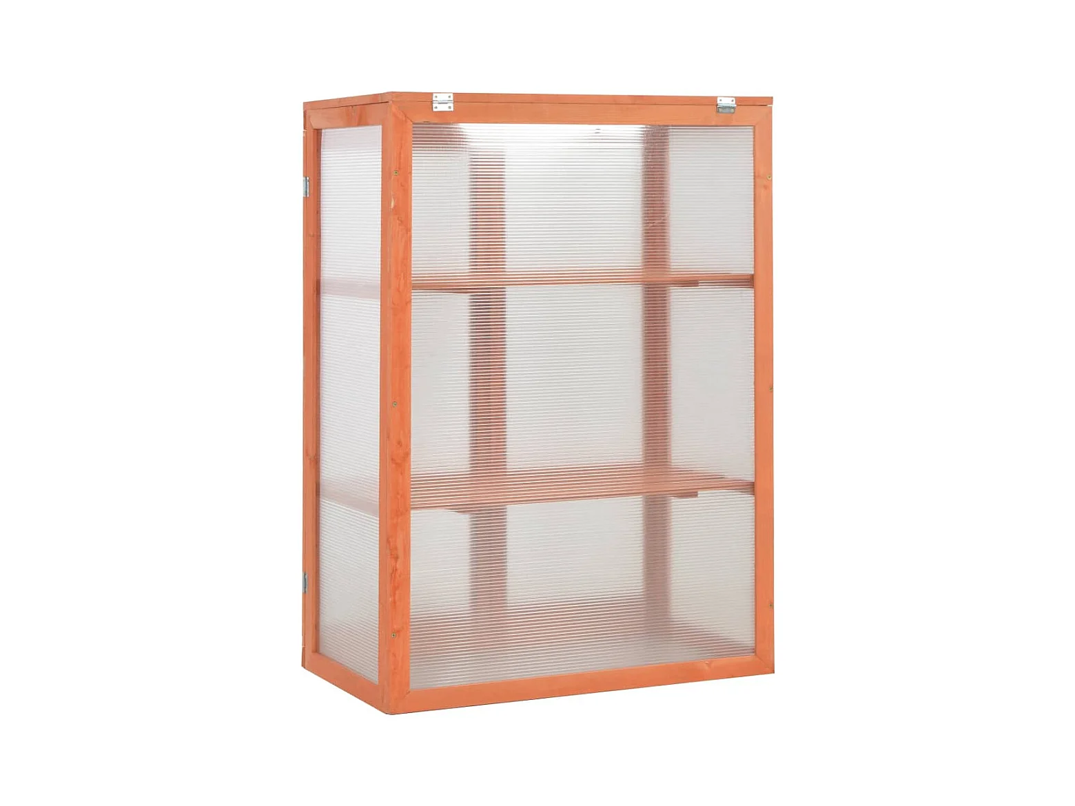 Invernadero de jardín con cubierta, de madera maciza y policarbonato, color naranja, resistente a la intemperie (90x46x40cm)