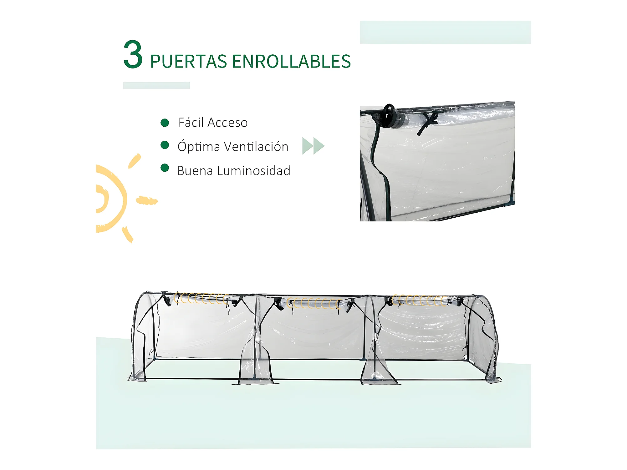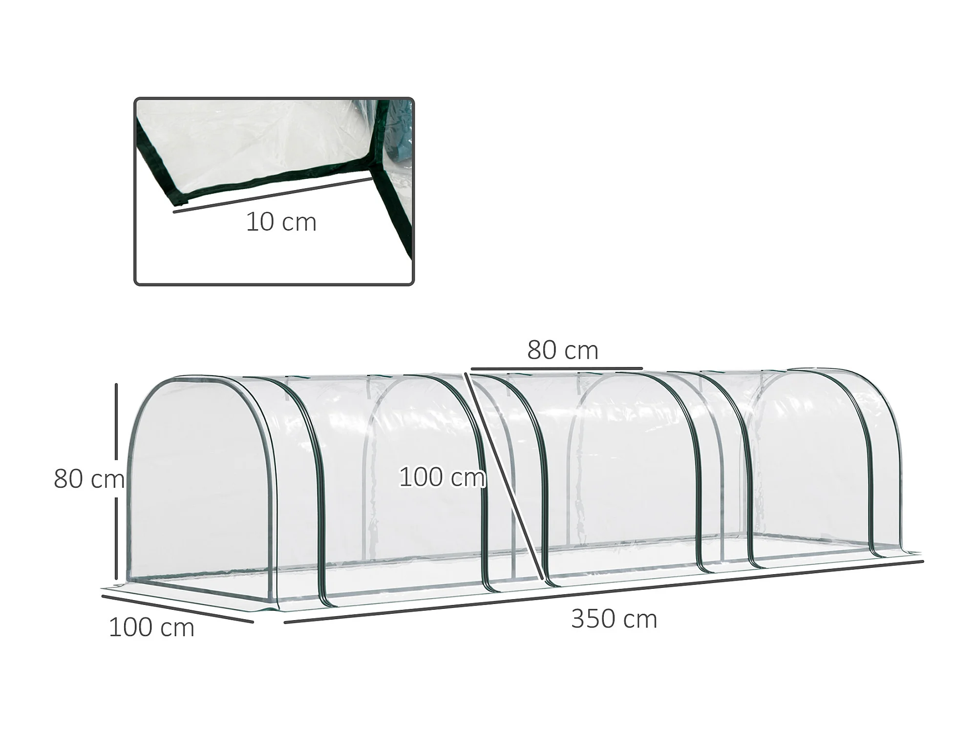 Invernadero túnel transparente, verde oscuro 350x100x80cm Outsunny