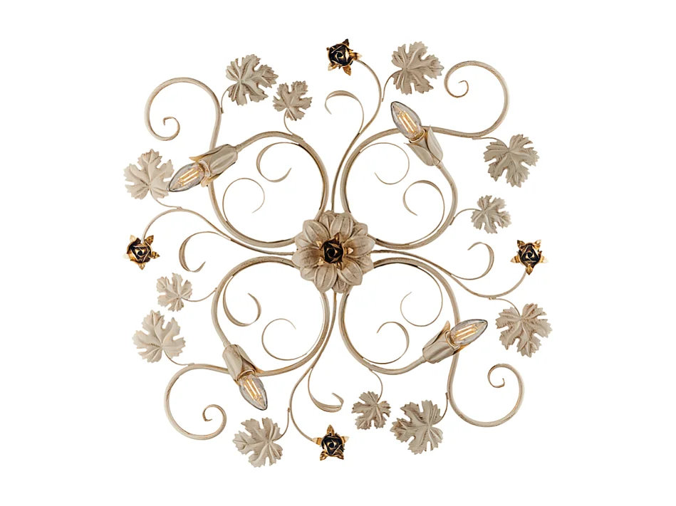 Iris - Lámpara de techo en hierro lacado marfil con decoración. Oro antiguo 4 luces H.17 - Ø76 - BL169-PL4-AV