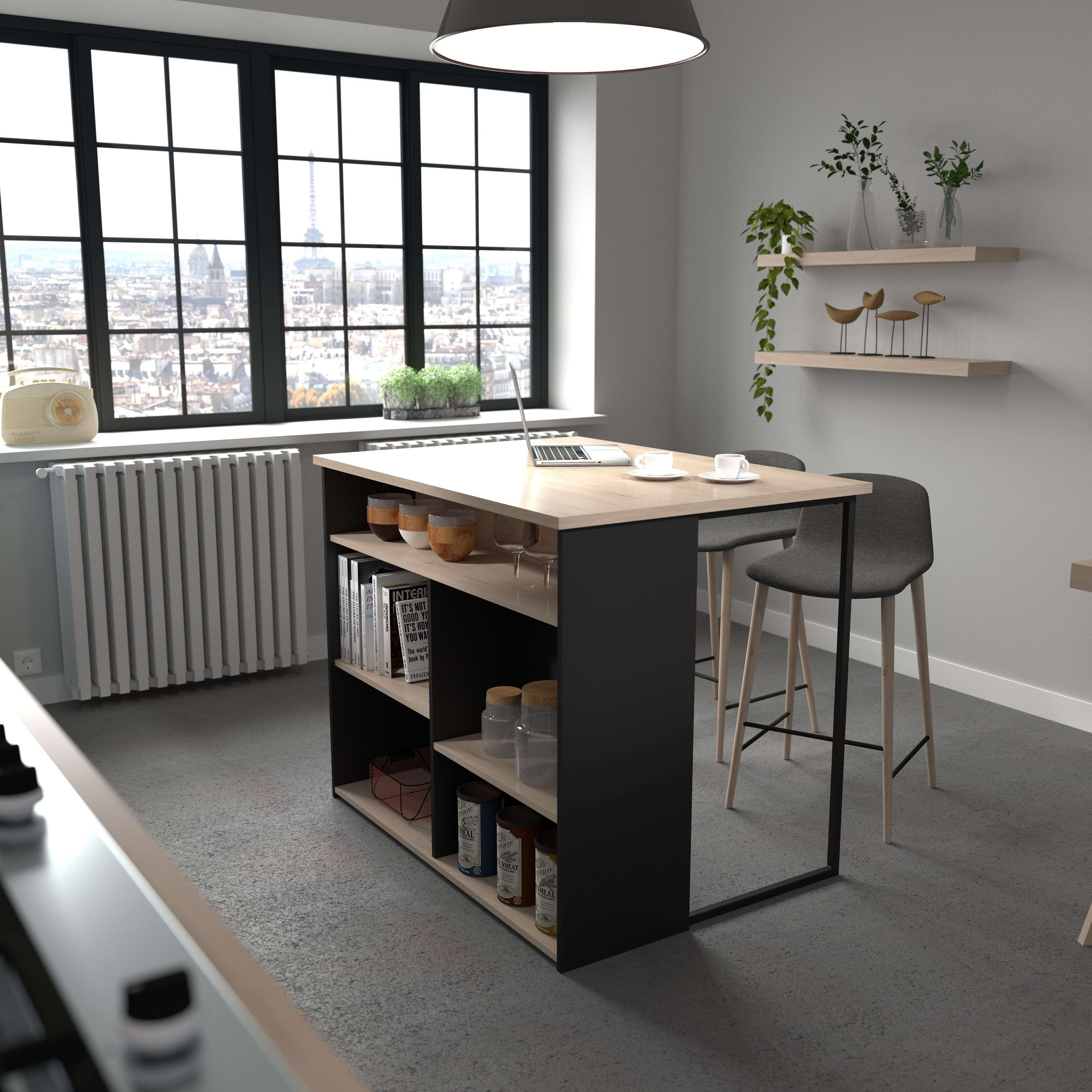 Isla Cocina Buh Auxiliar Negro/Roble Jackson 109x90x80 cm
