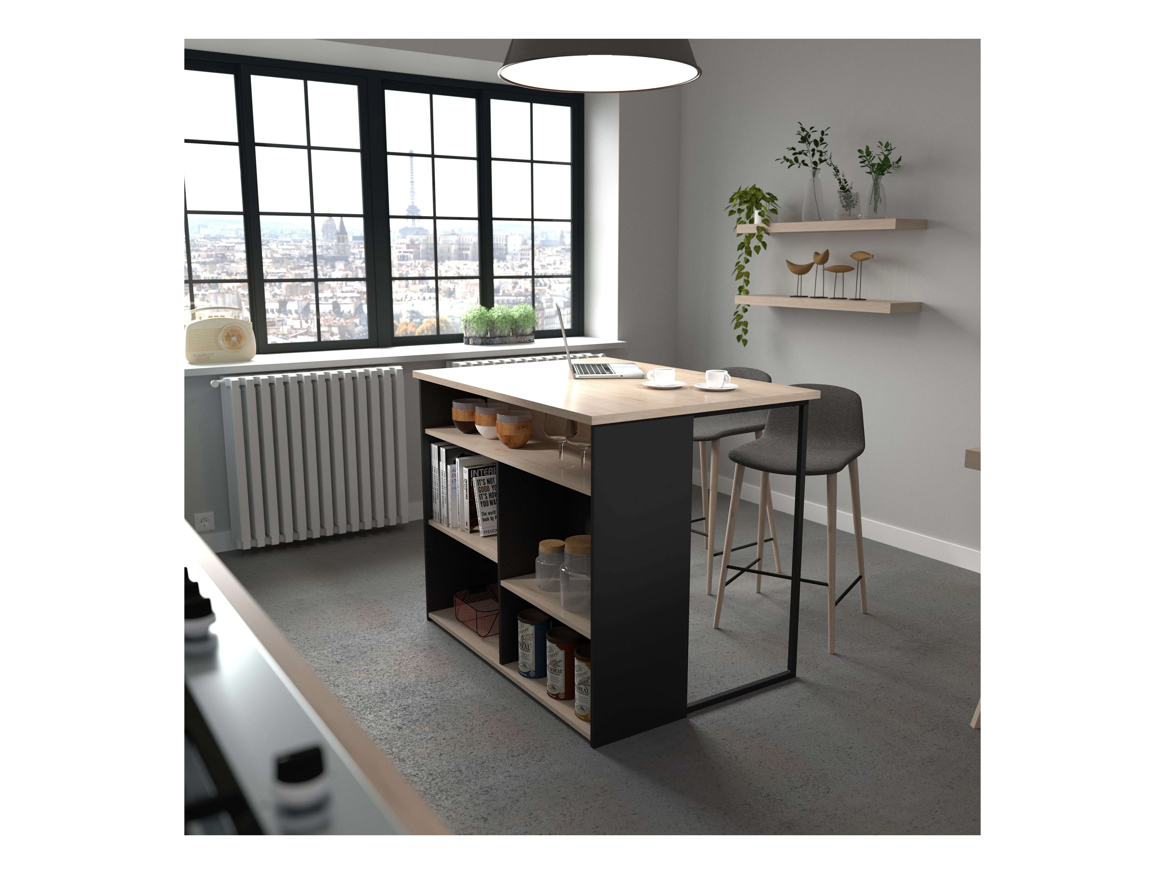 Isla central de cocina con 1 puerta 6 nichos y 2 cajones en MDF - Negro - 129x46x92cm