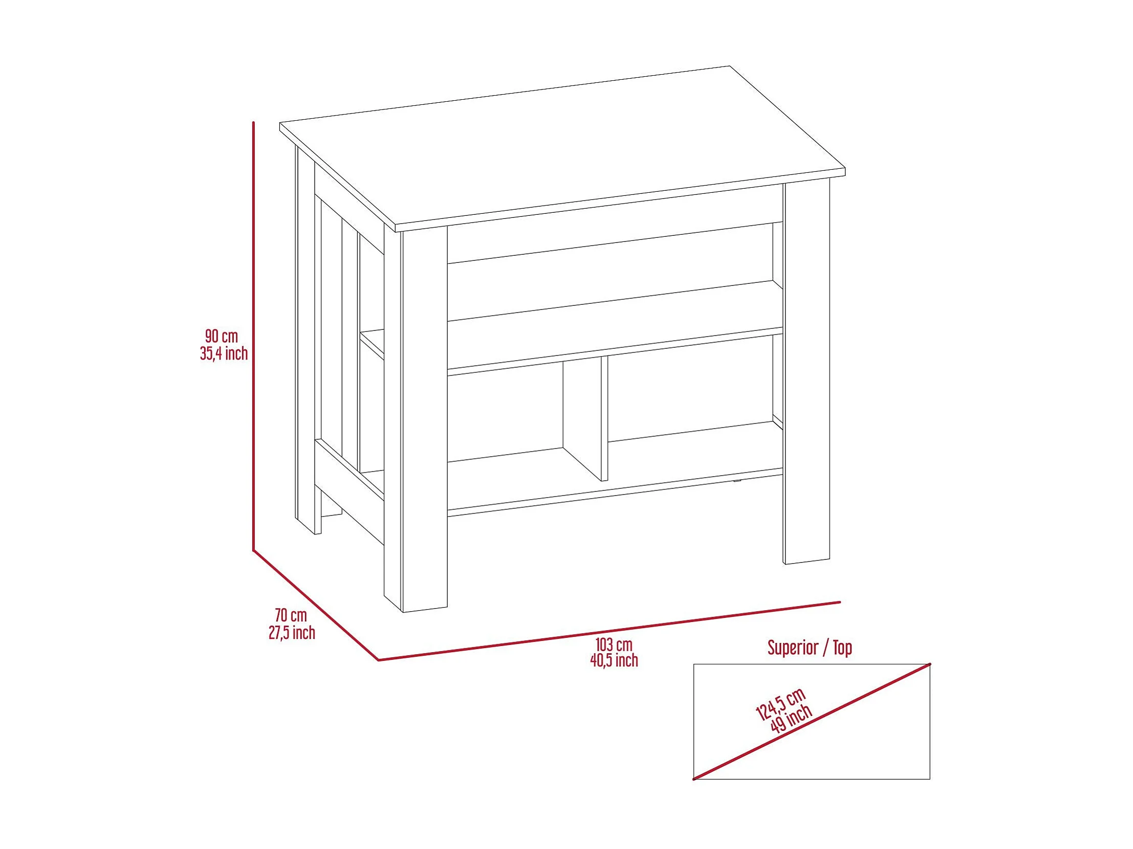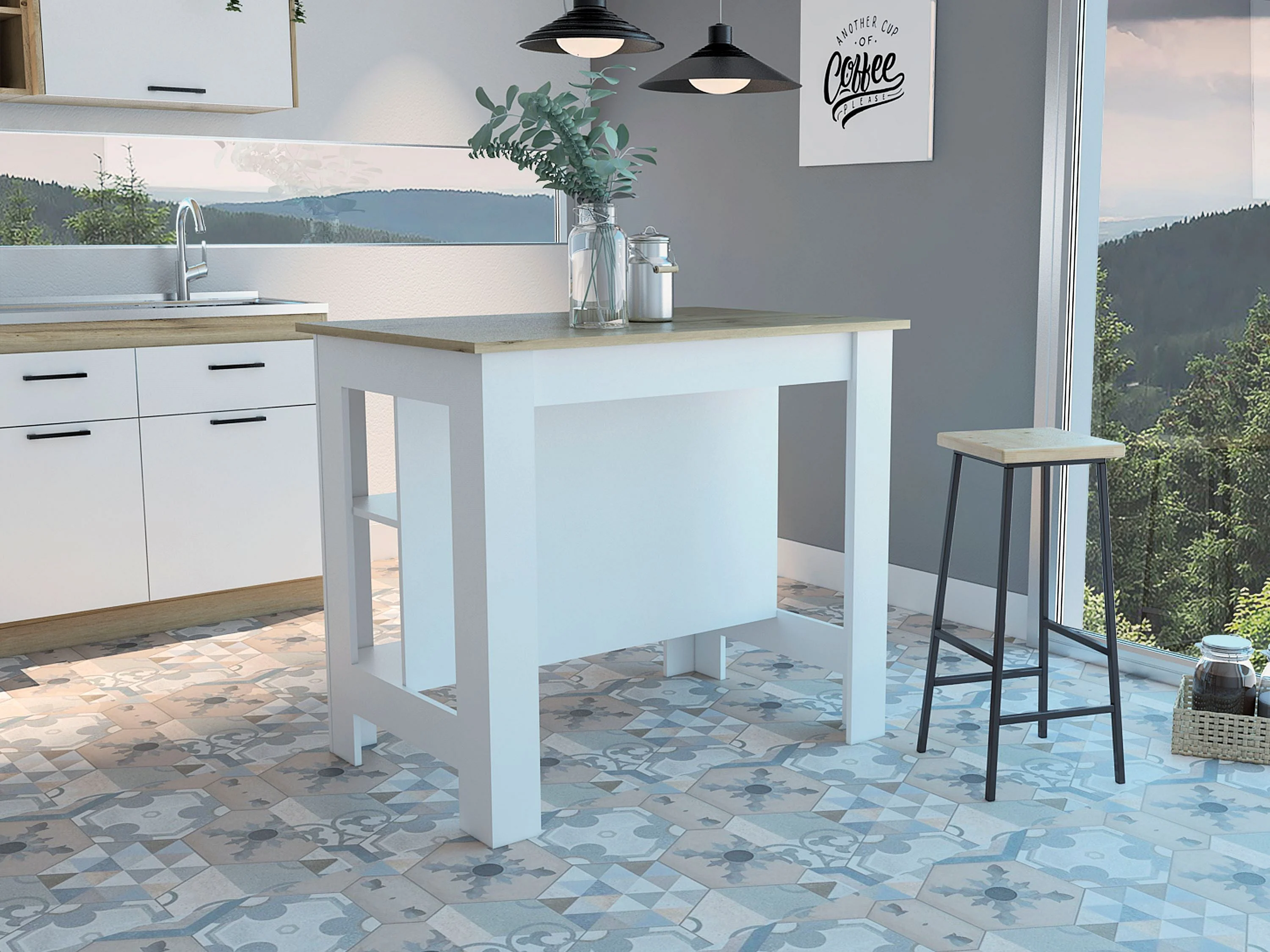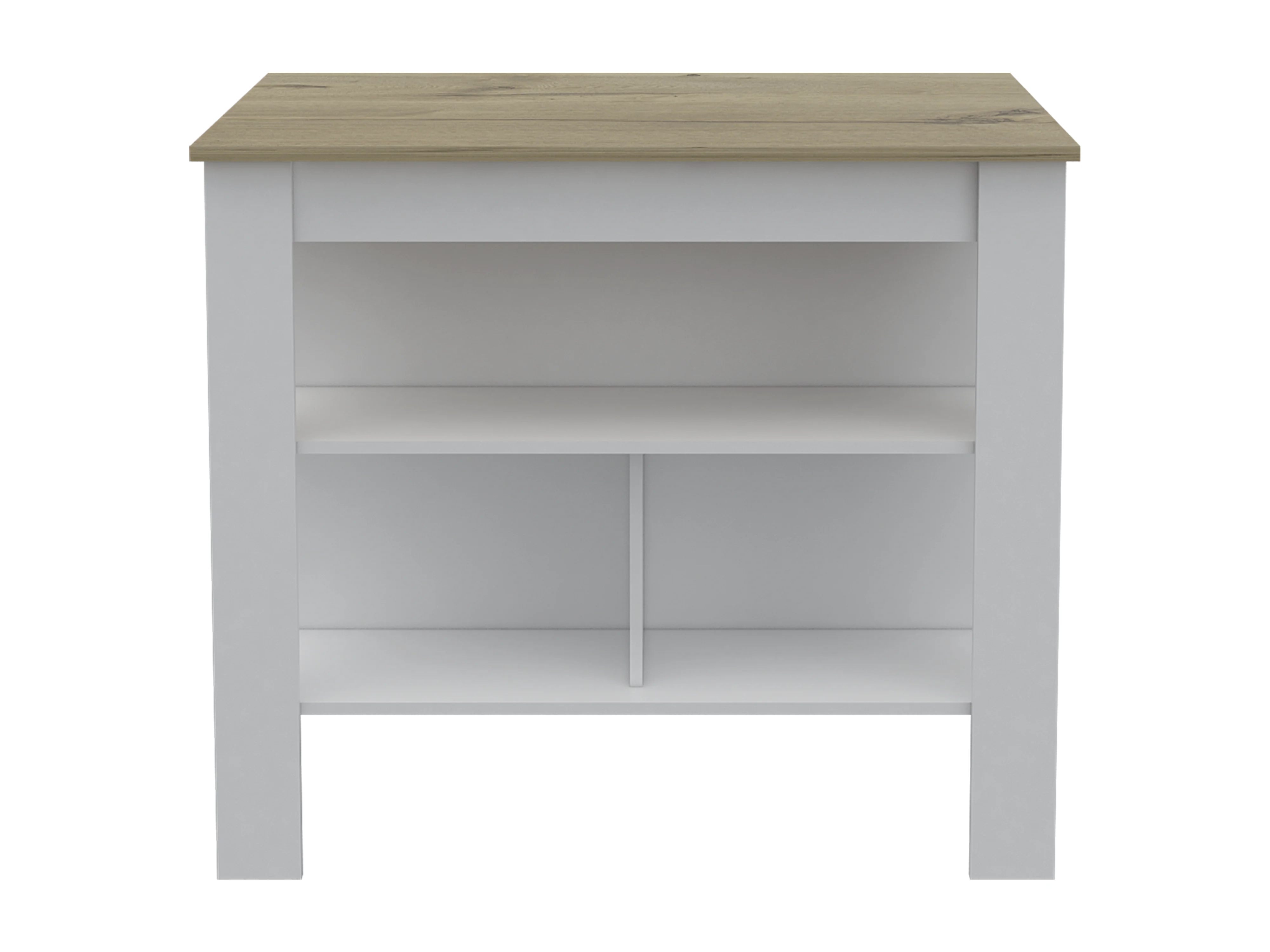 Isla de Cocina Cala en melamina con tres estantes , 89.99 cm X 102.99 cm X 69.97 cm , Blanco / Duna