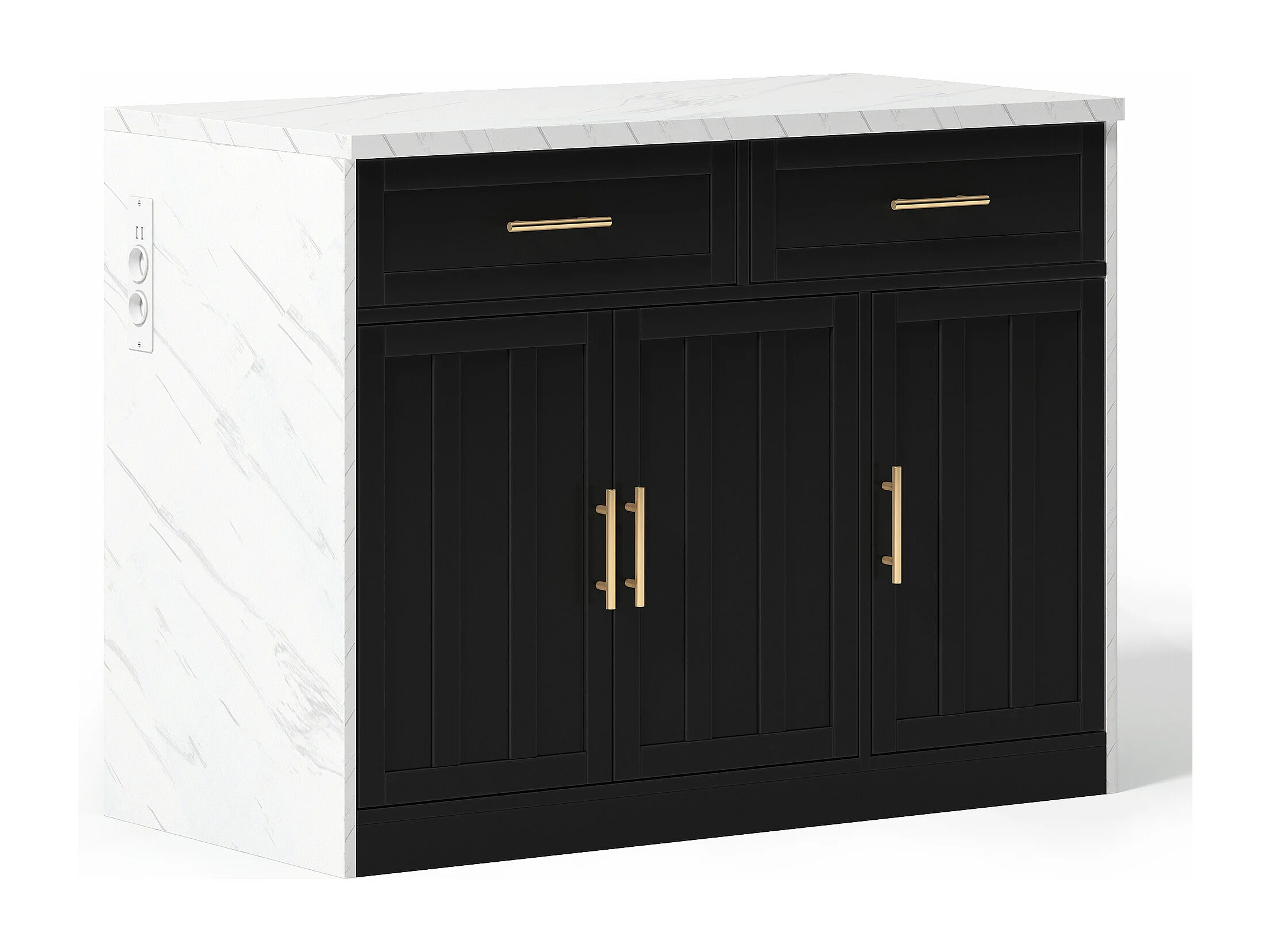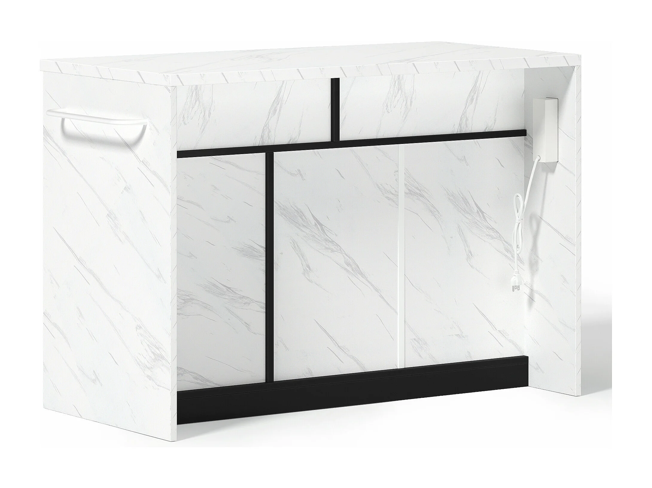 Isla de cocina con 3 puertas, 2 cajones y puerto USB - Efecto mármol blanco - Negro