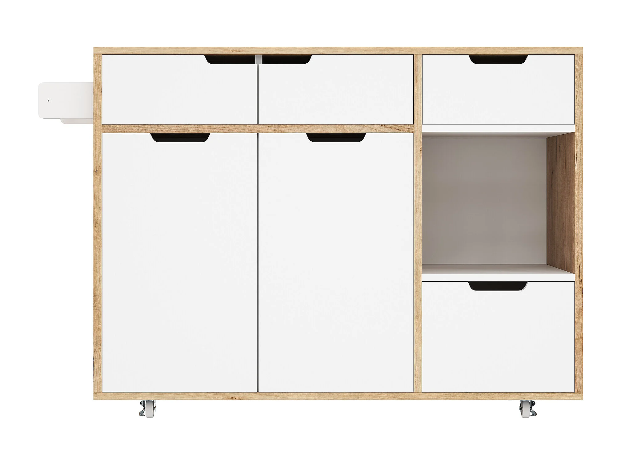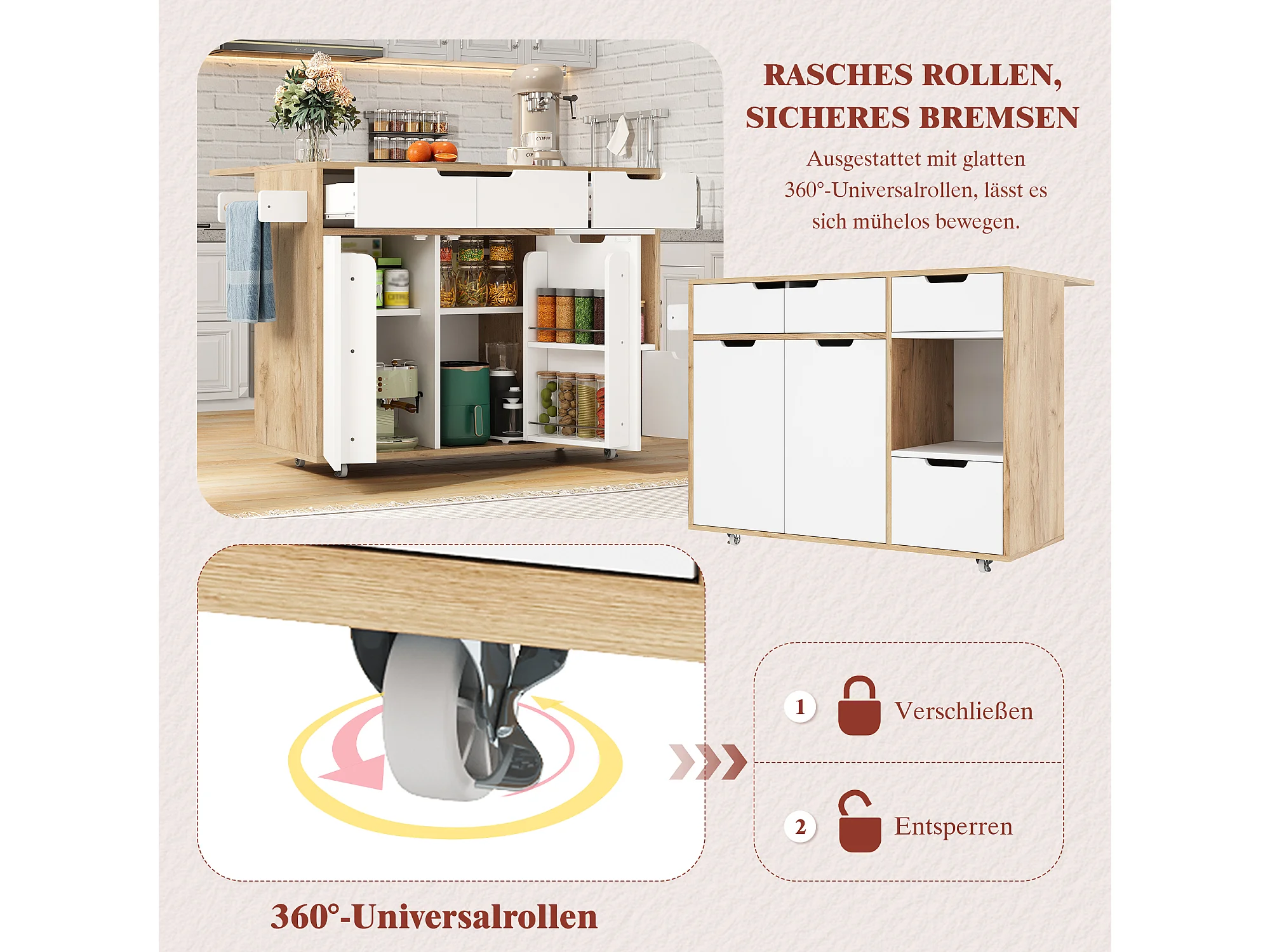Isla de cocina con ruedas con 3 cajones y 3 puertas - Carrito de servicio moderno blanco y madera