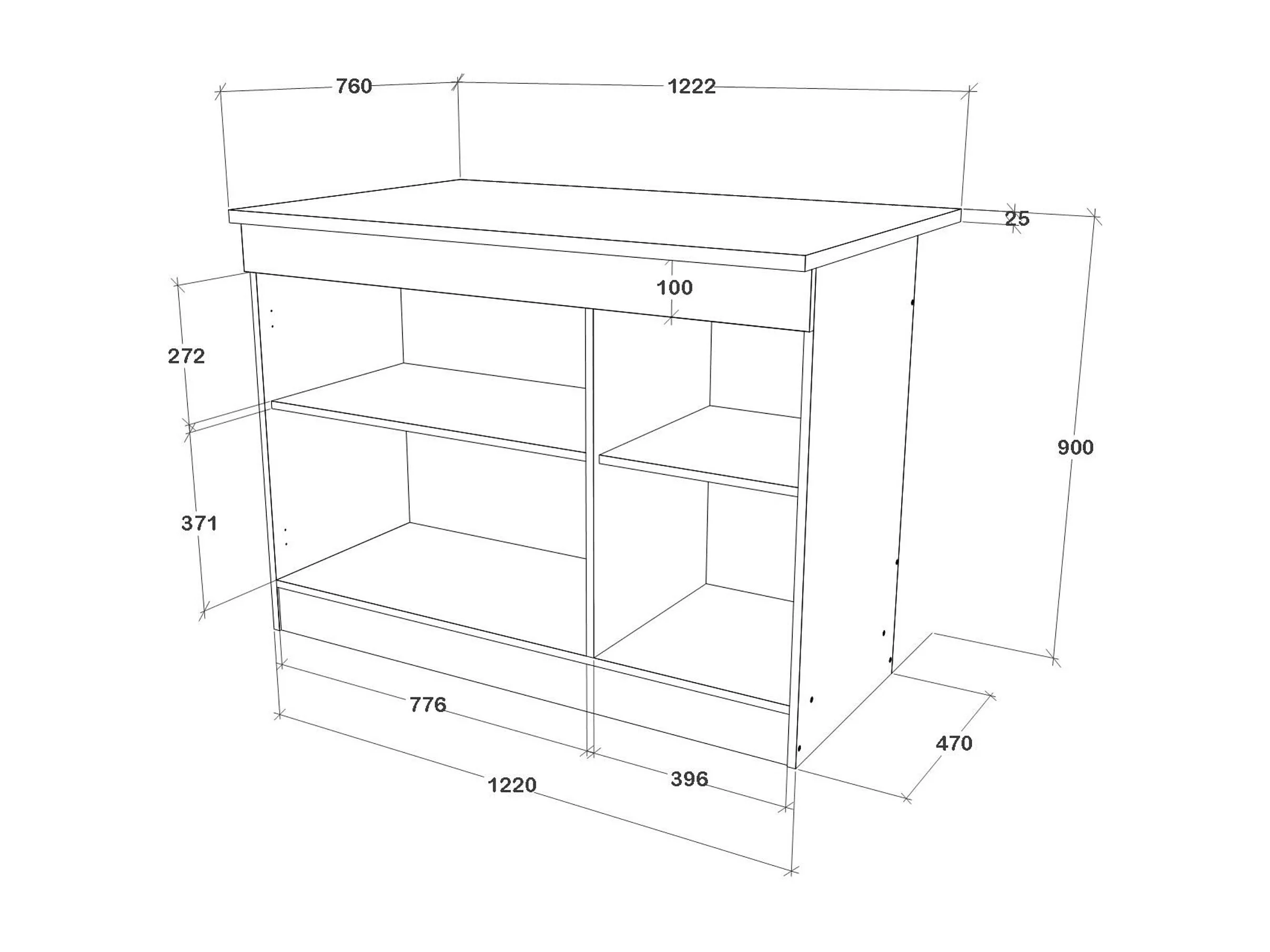 Isla de cocina central - con 2 cajones y 4 estantes abiertos - encimera de imitación mármol negro - Natural