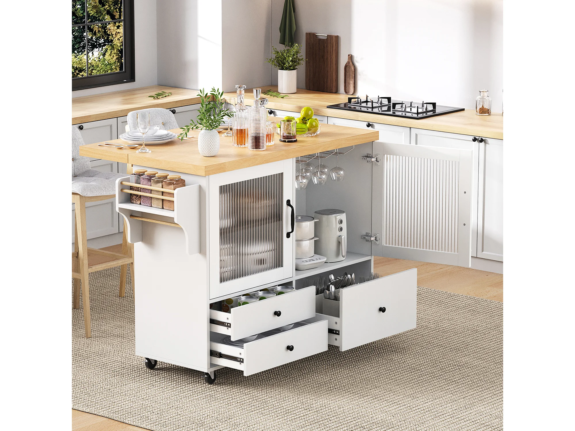 Isla de cocina móvil 100x42x91.5cm - encimera extensible - espacio de almacenamiento multifuncional - blanco