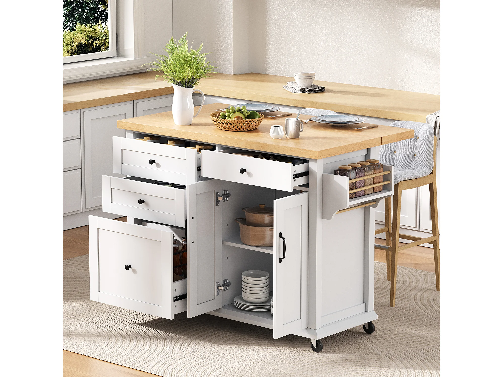 Isla de cocina móvil 107x45x90.5cm - encimera extensible - con 4 cajones y 2 puertas - con toallero - blanco