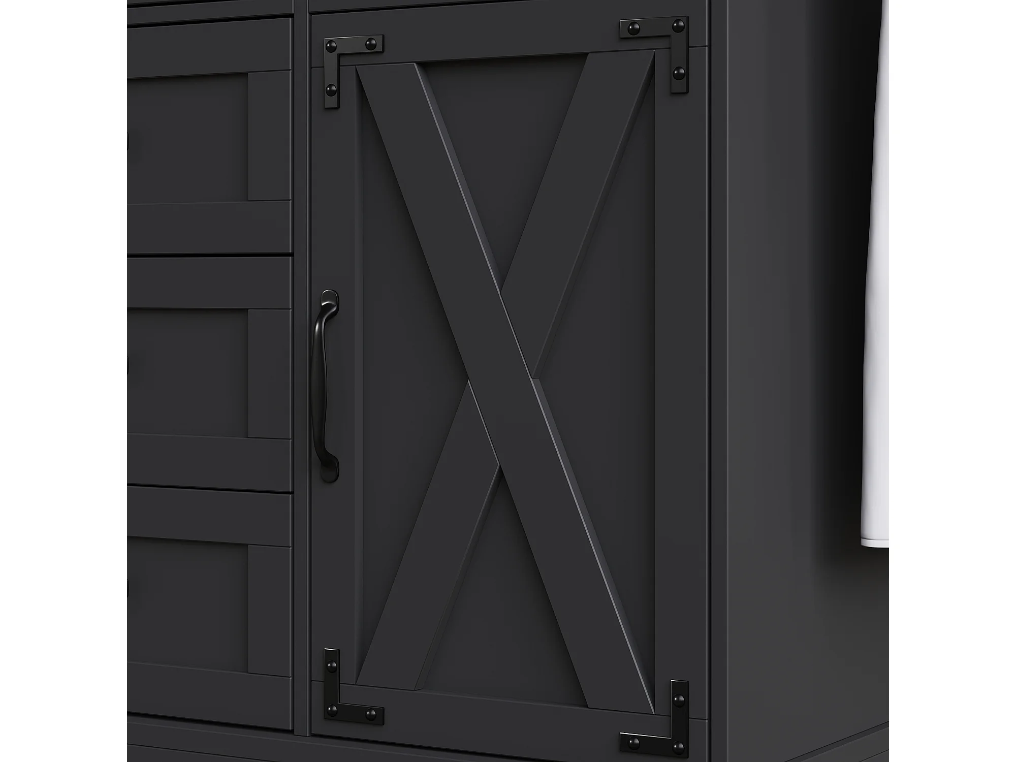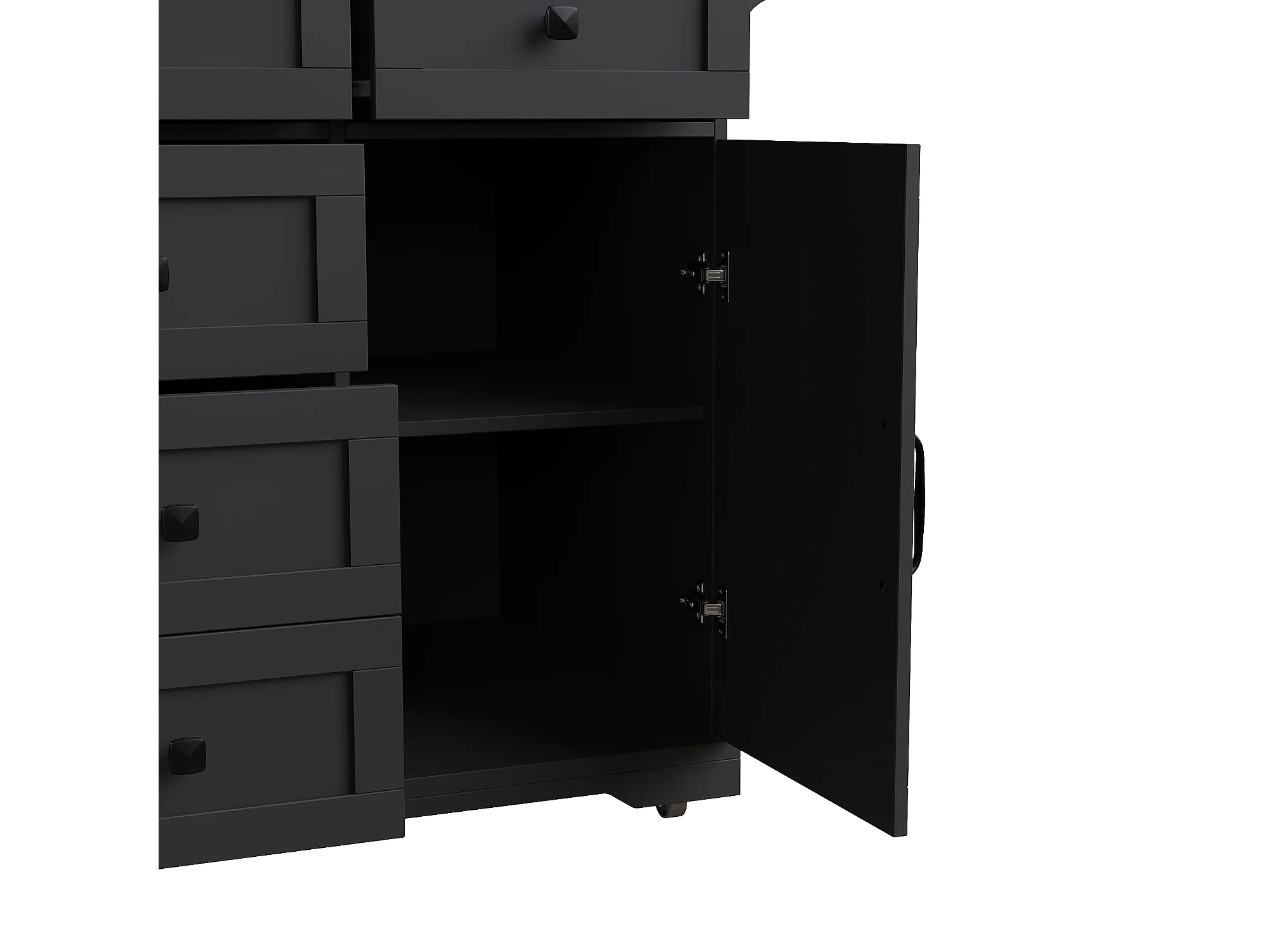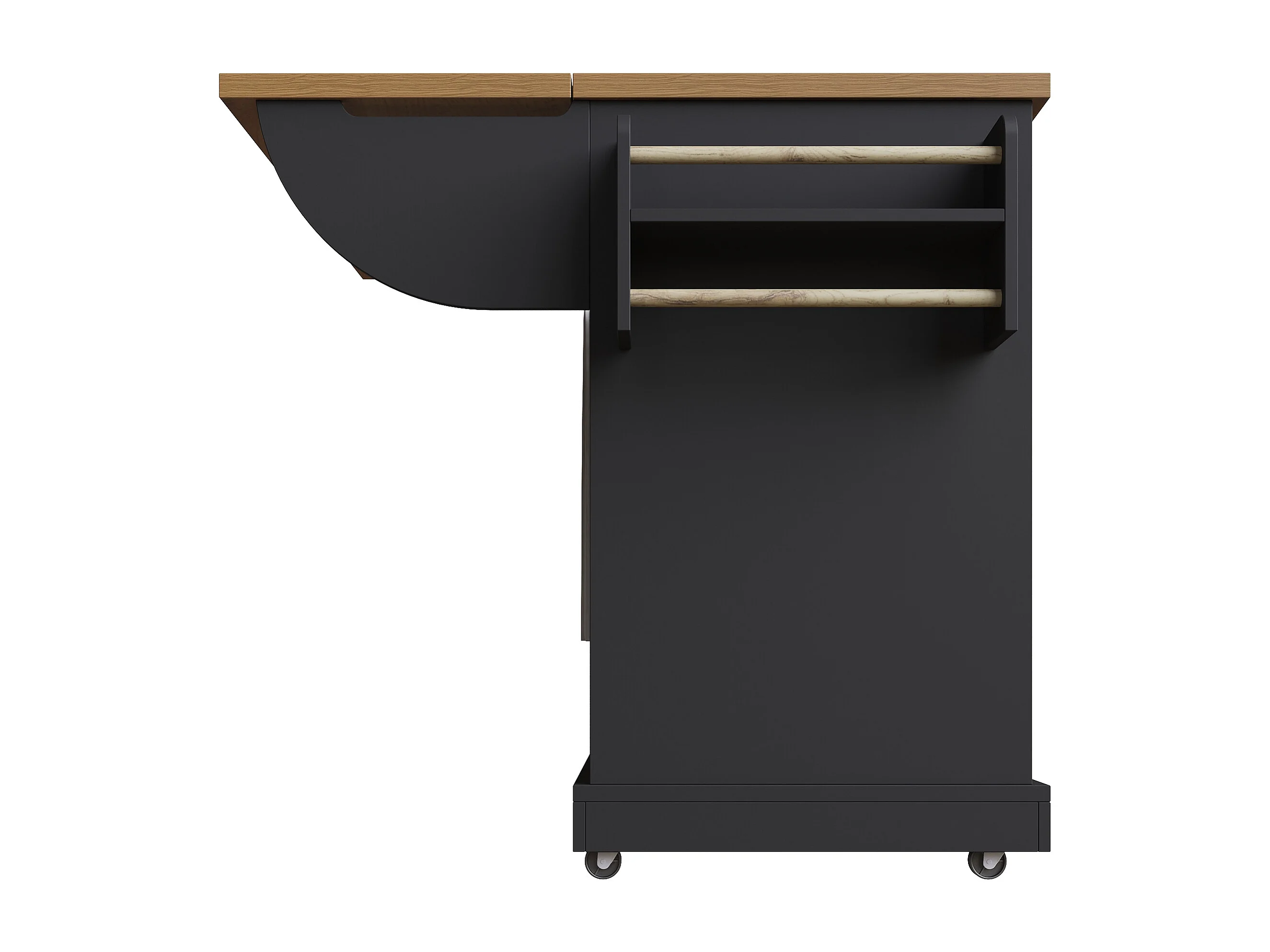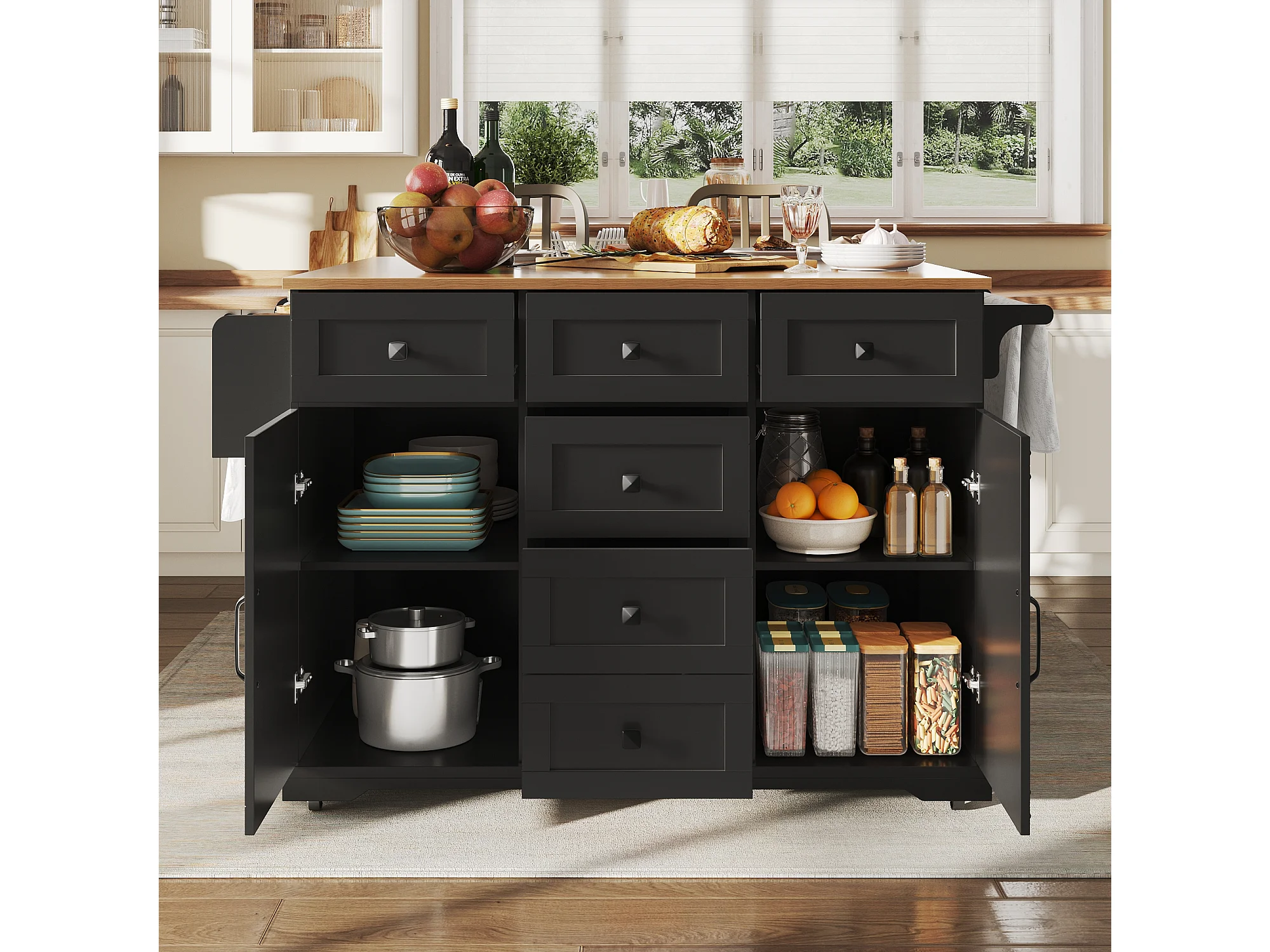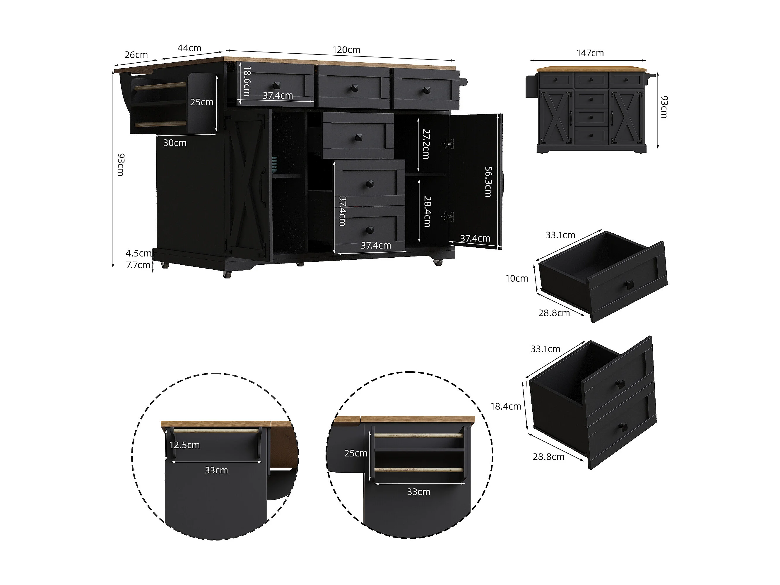 Isla de cocina móvil con tablero plegable, 6 cajones y 2 puertas - negro