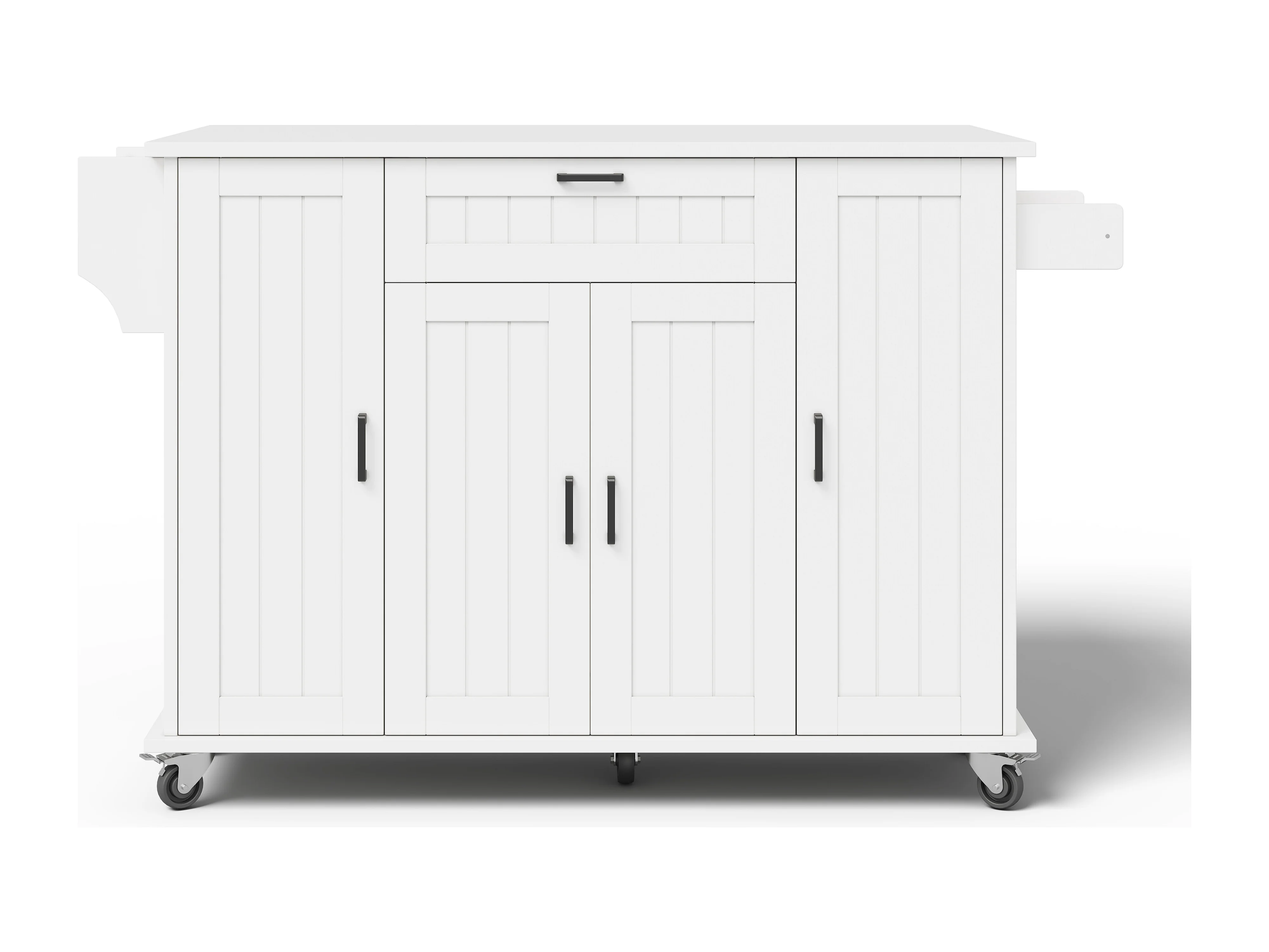 Isla de cocina móvil - encimera extensible - con toallero - con 1 cajón y 4 puertas - MDF - Blanco
