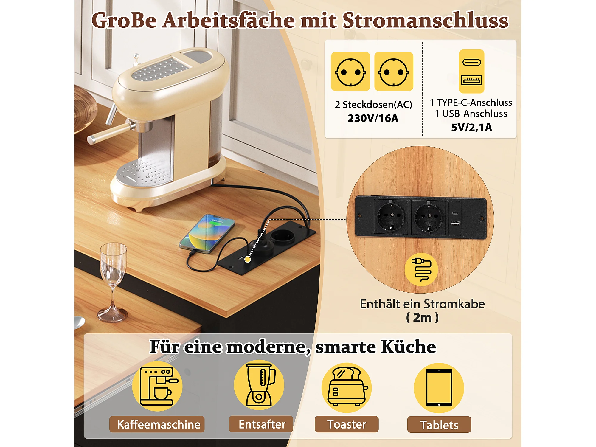 Isla de cocina moderna, mueble multifuncional con almacenaje, encimera imitación madera, color negro (102x45x92 cm)