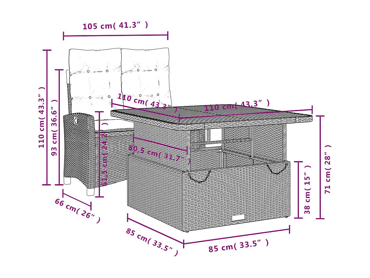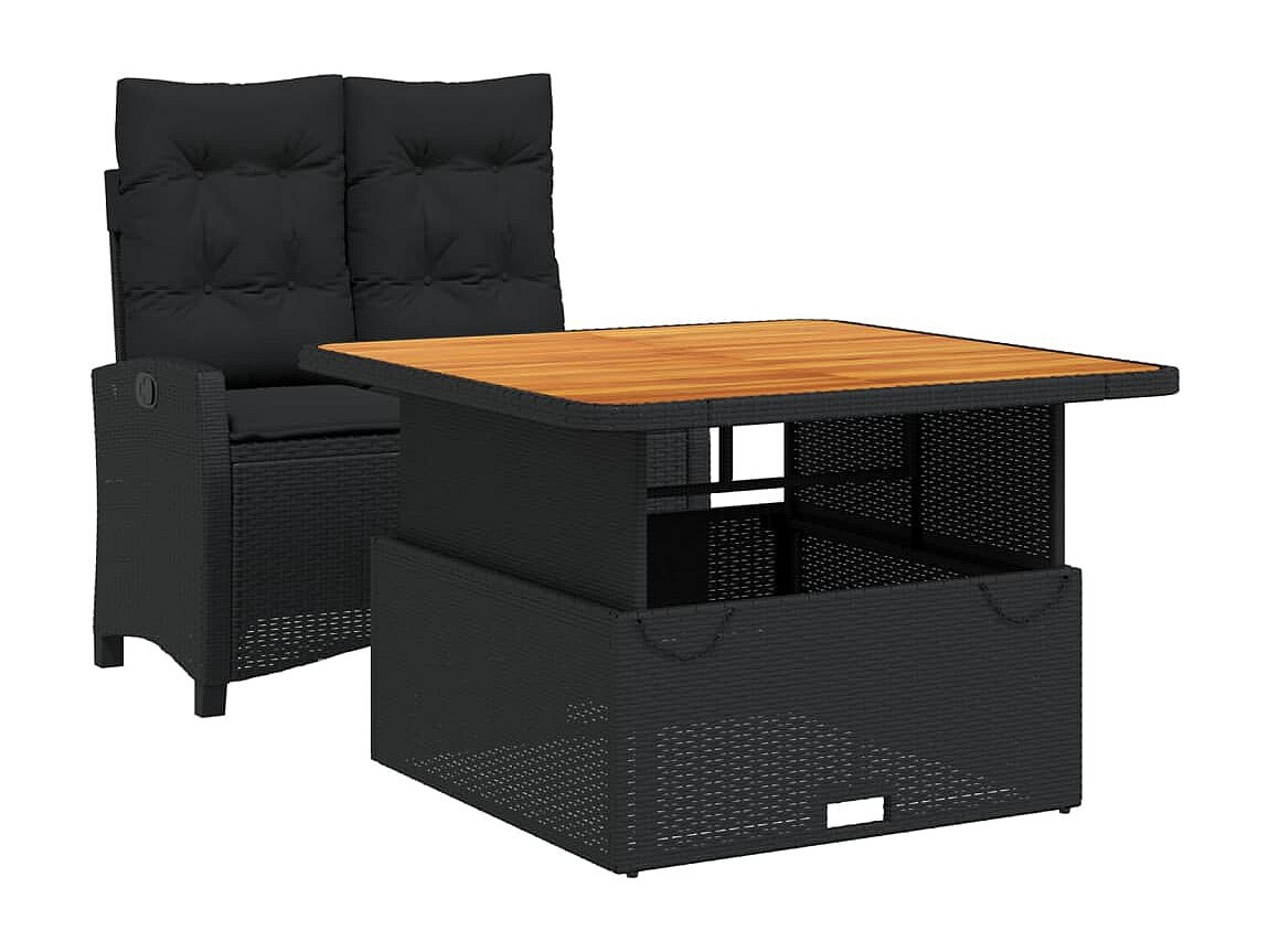Isyra Set comedor de jardín 2 pzas con cojines ratán sintético negro