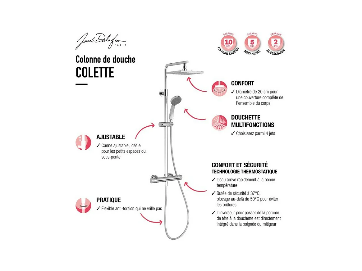 JACOB DELAFON Columna de ducha termostática Colette 4 chorros Cromo