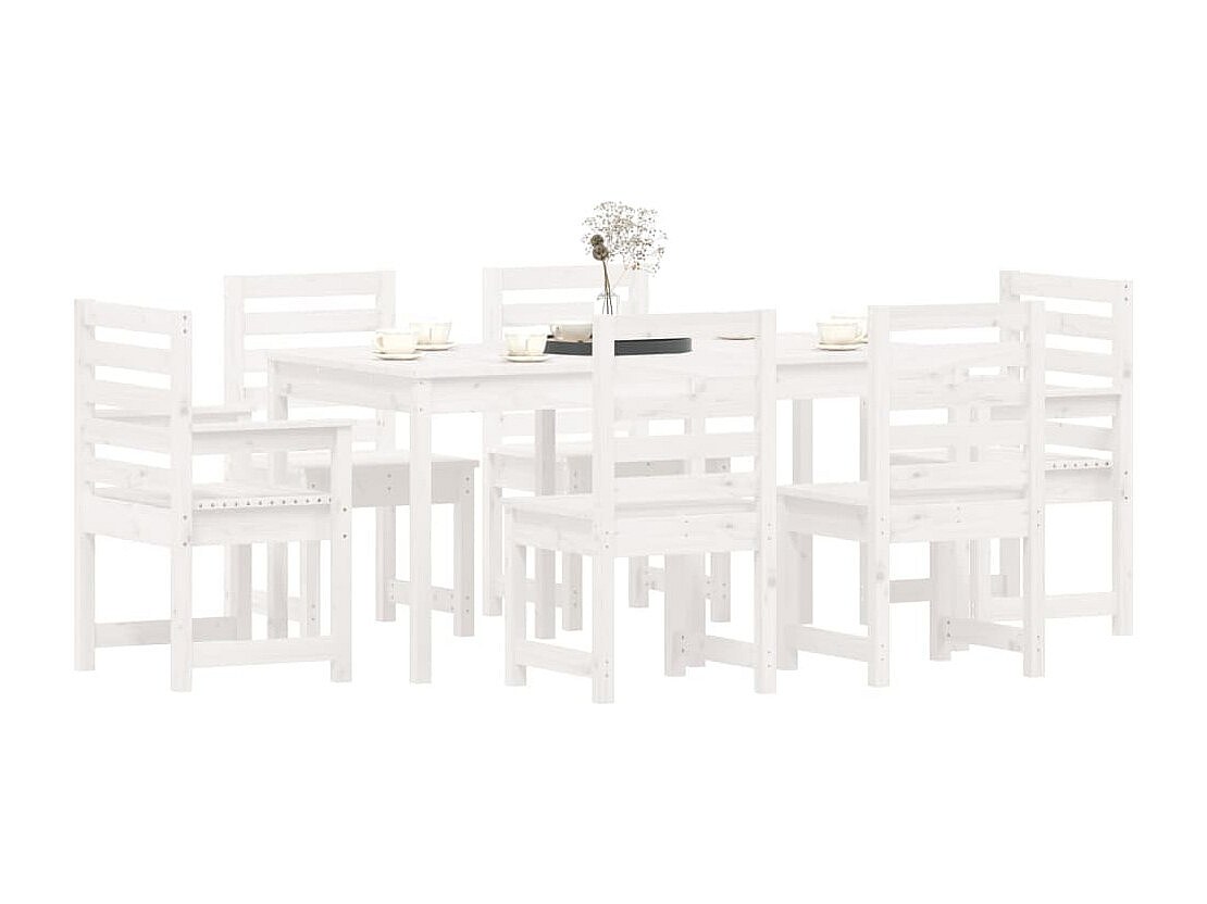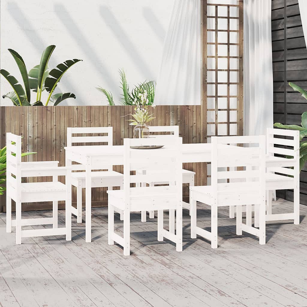 Conjunto de comedor de jardín de 7 piezas blanco madera maciza de pino 02_0014338