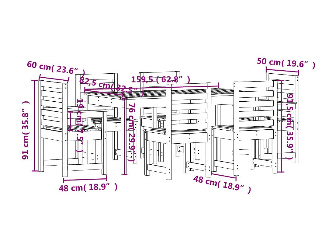Juego de comedor de jardín 7 piezas madera maciza pino blanco