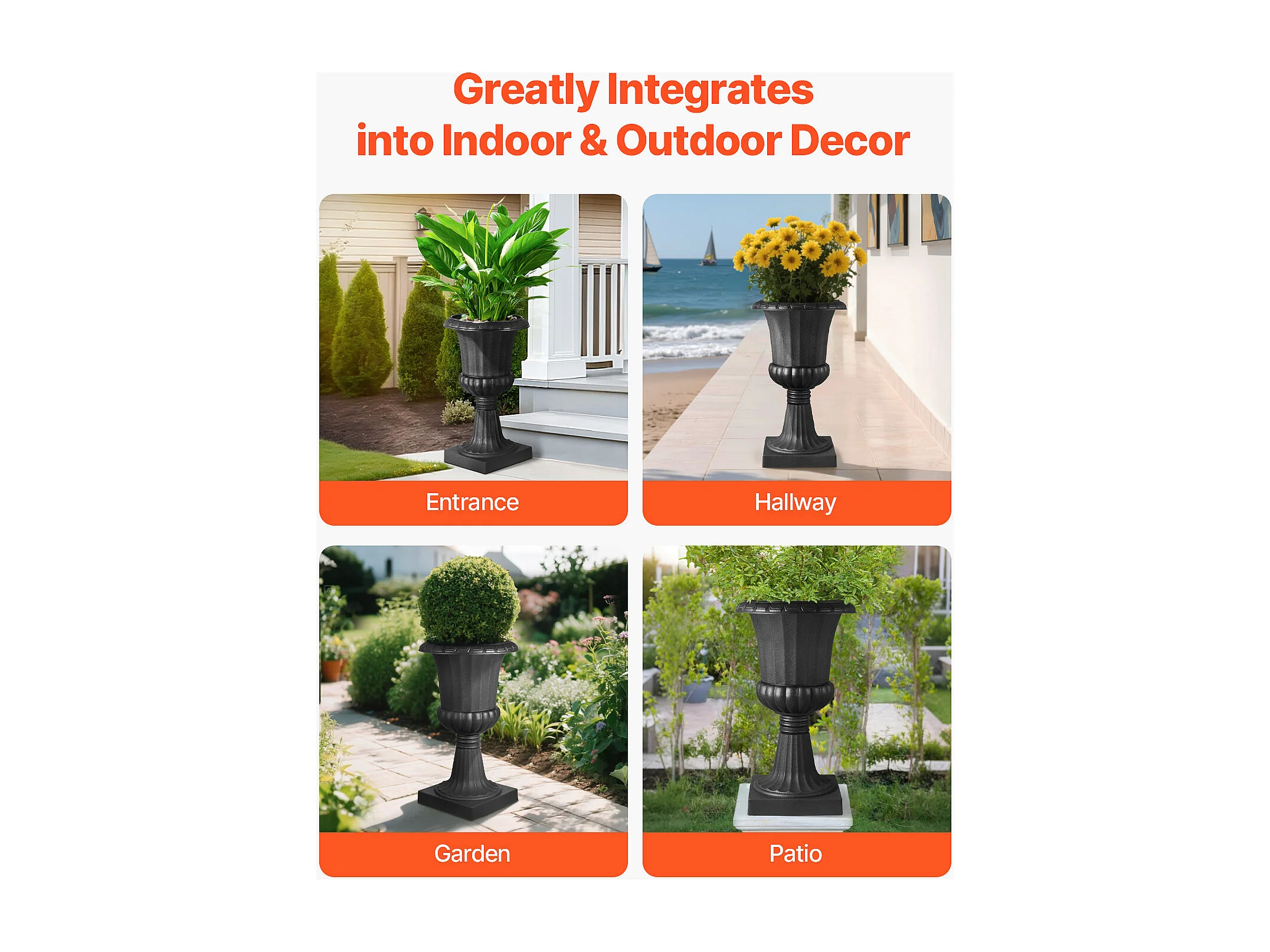 Jardiner Urna de Plástico SucceBuy, 40 x 67 cm, Maceta Clásica, Lote de 2, para Interior, Exterior, Boda, Fiestas, Eventos, Escenario, Entradas, Negro