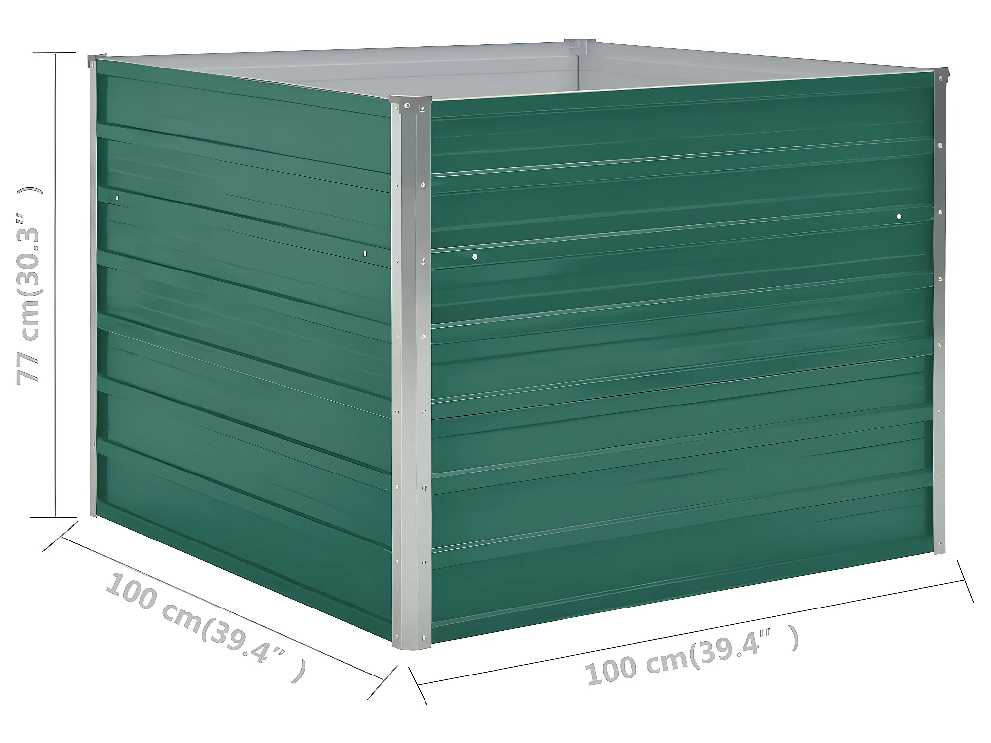 Jardinera arriate elevado plantas flores jardín 100 x 100 x 77 cm verde acero galvanizado 02_0000787