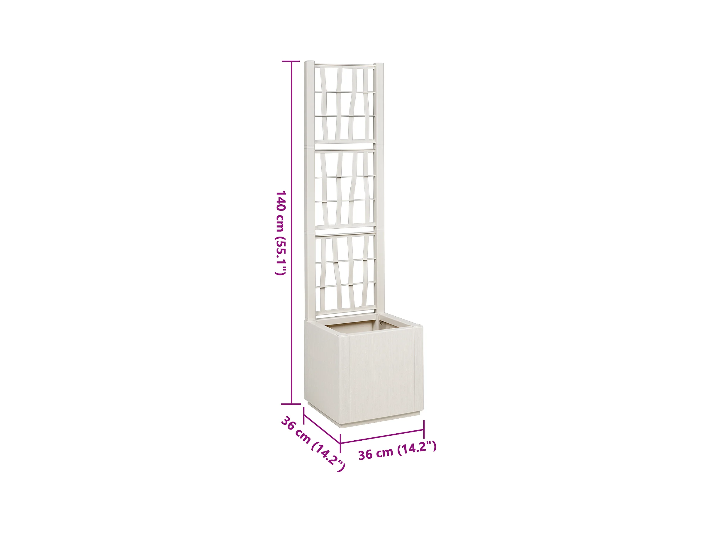 Jardinera con enrejado Blanco 36x36x140 cm PP