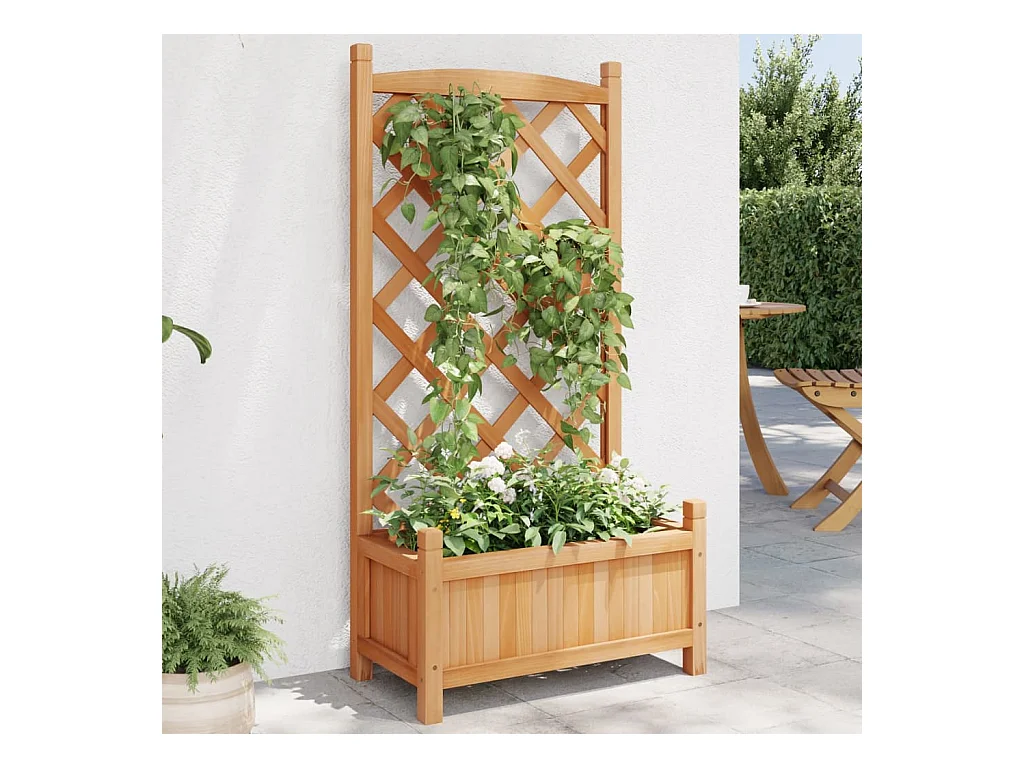 Jardinera con enrejado de madera maciza de abeto marrón ES251710
