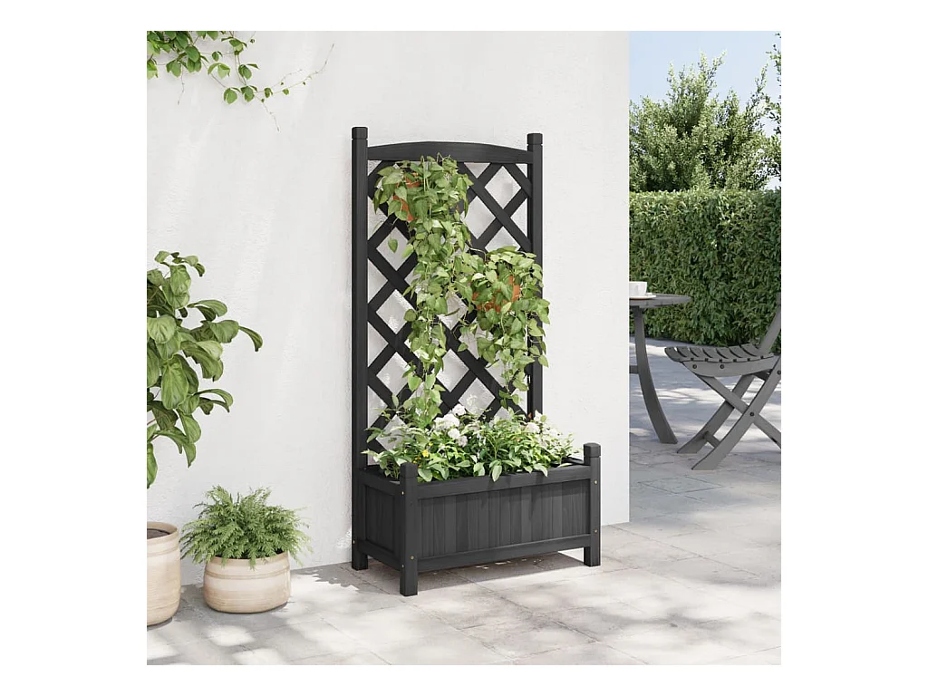 Jardinera con enrejado madera maciza de abeto negro ES458060