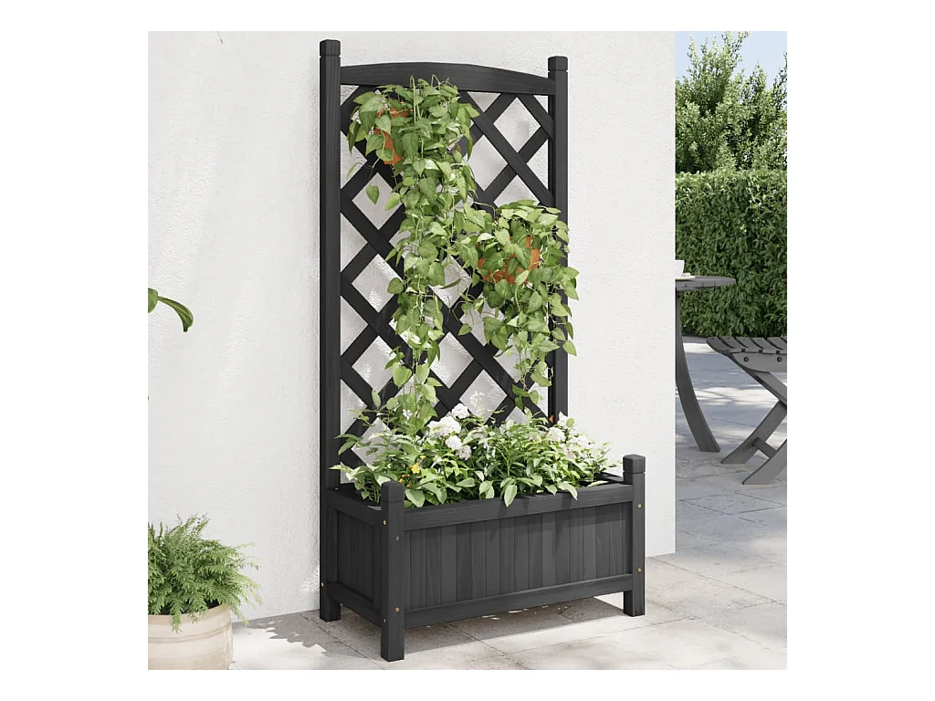 Jardinera con enrejado madera maciza de abeto negro ES458060