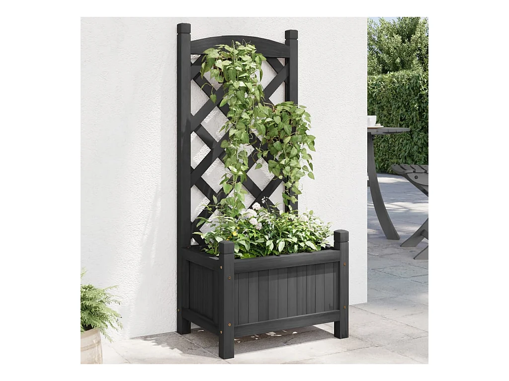 Jardinera con enrejado madera maciza de abeto negro ES458060