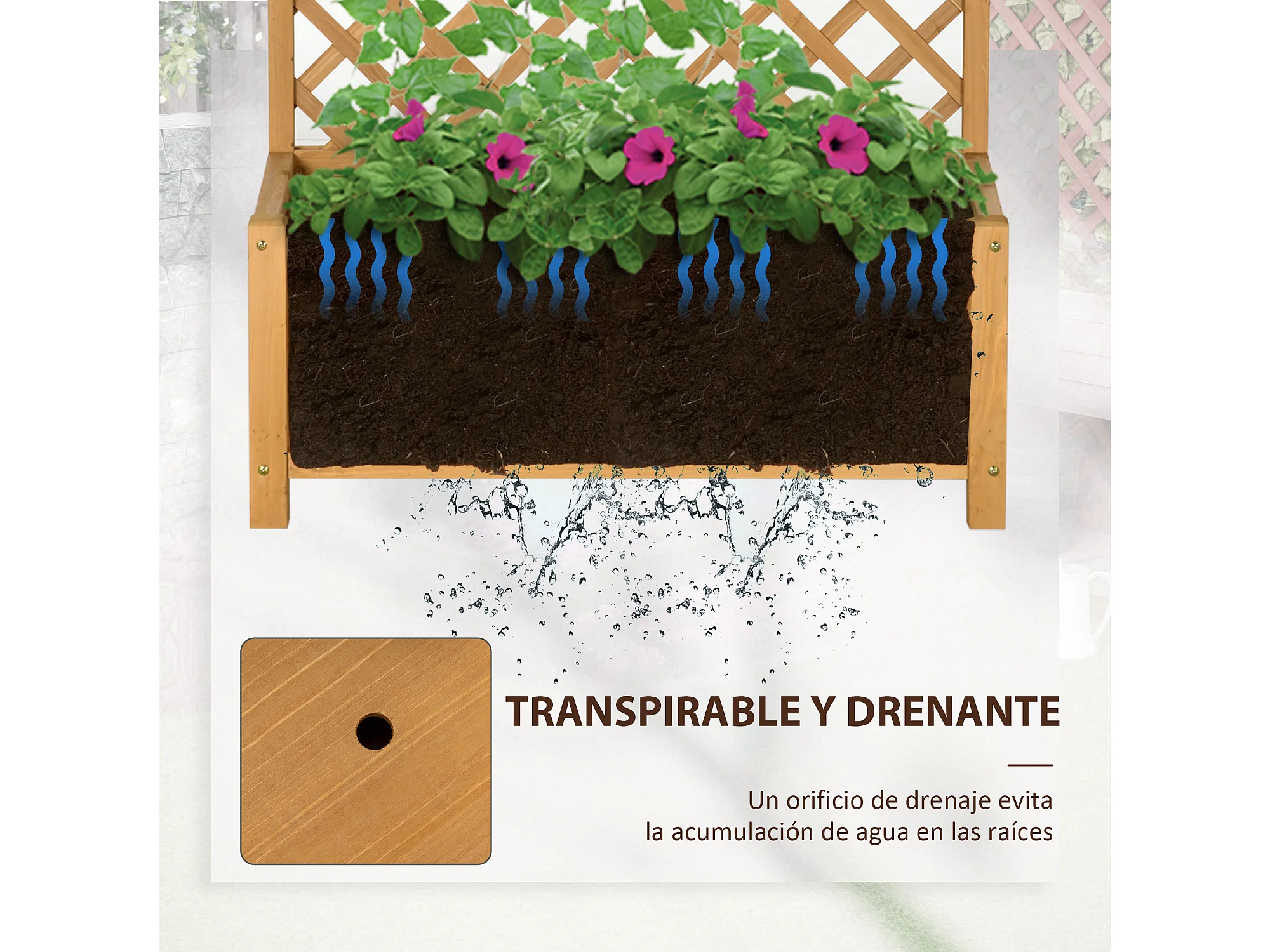 Jardinera con enrejado madera natural 90x45x180 cm Outsunny
