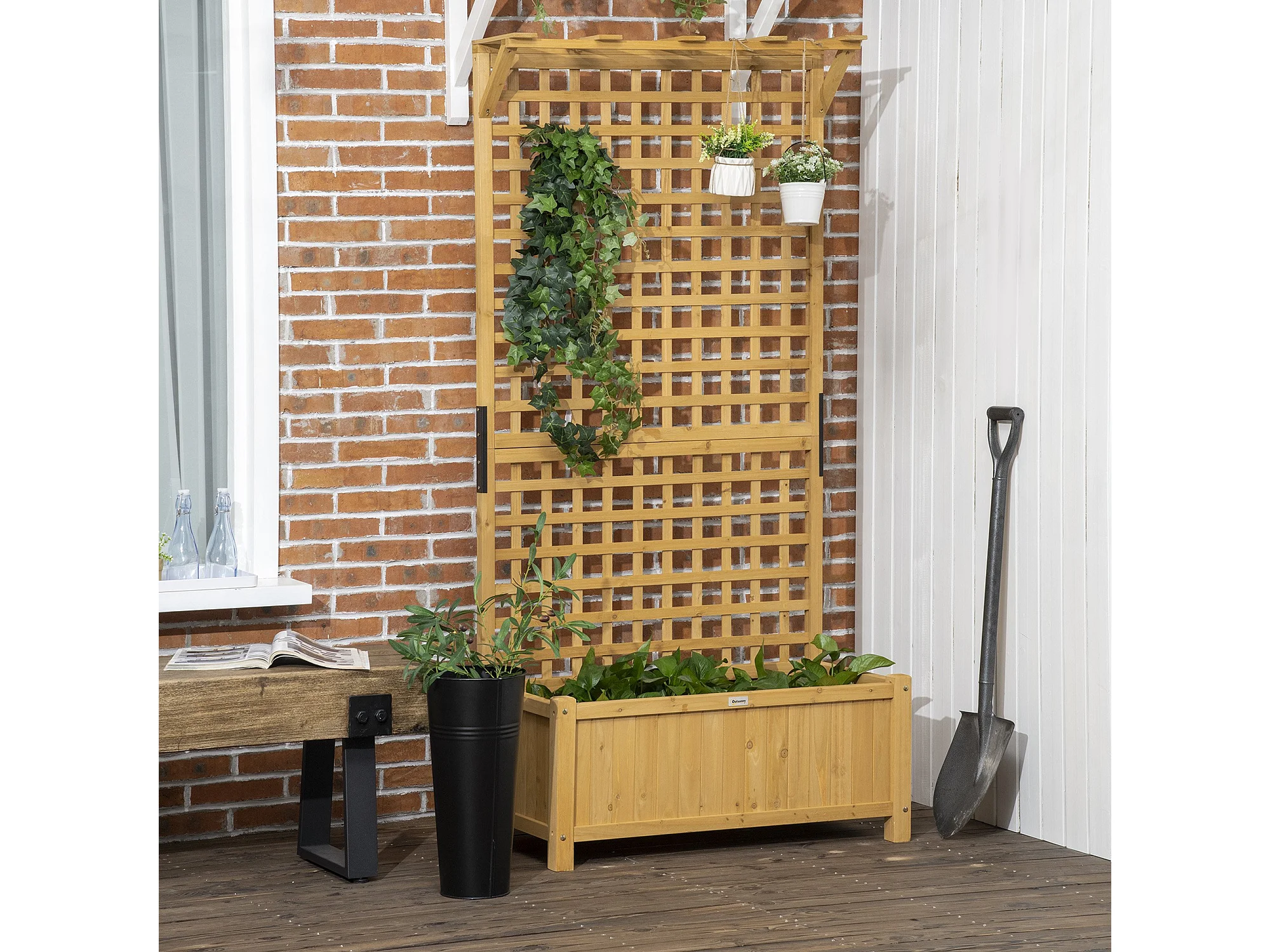 Jardinera con enrejado madera natural 90x45x183 cm Outsunny