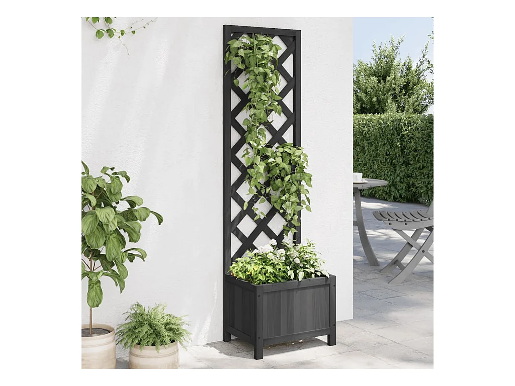 Jardinera enrejada negra de madera de abeto 70x30x135 cm