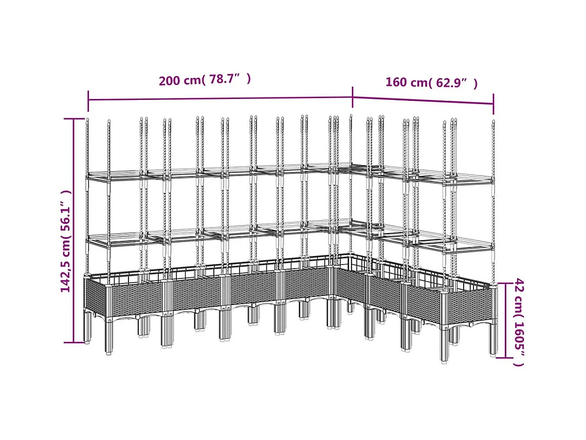 Jardinera con enrejado PP marrón 200x160x142,5 cm
