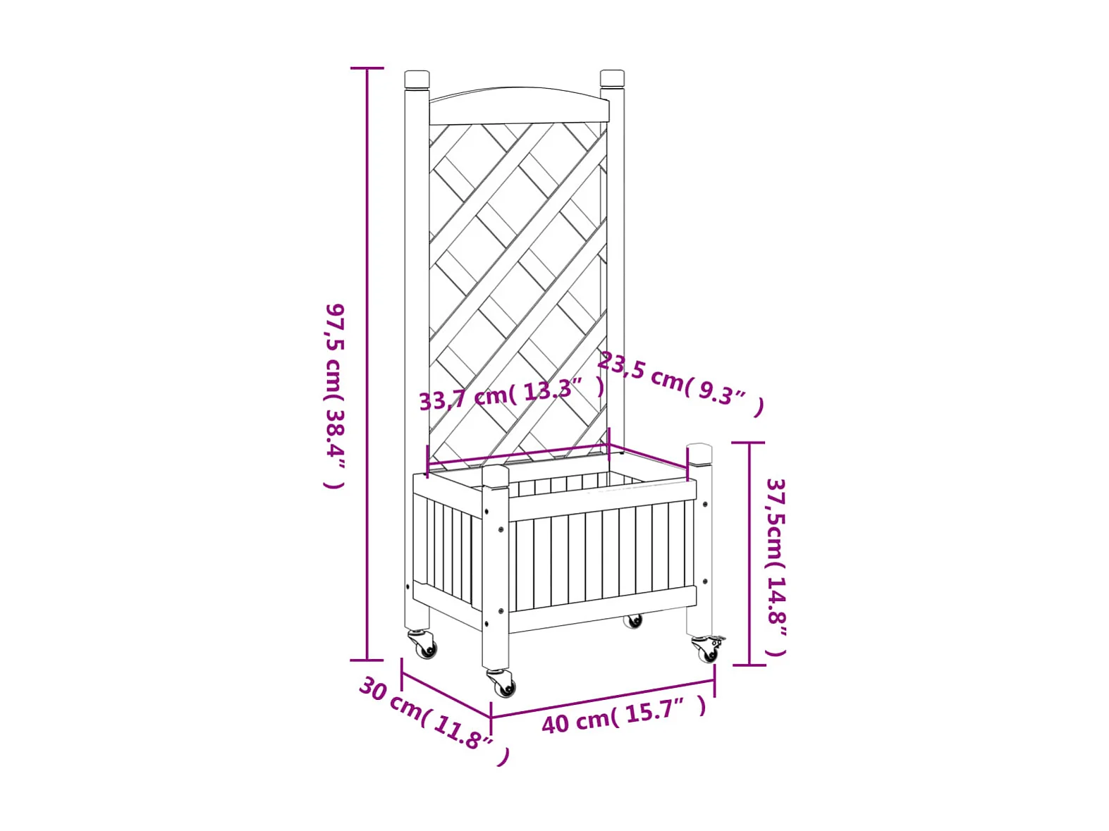 Jardinera con enrejado y ruedas madera maciza de abeto negro