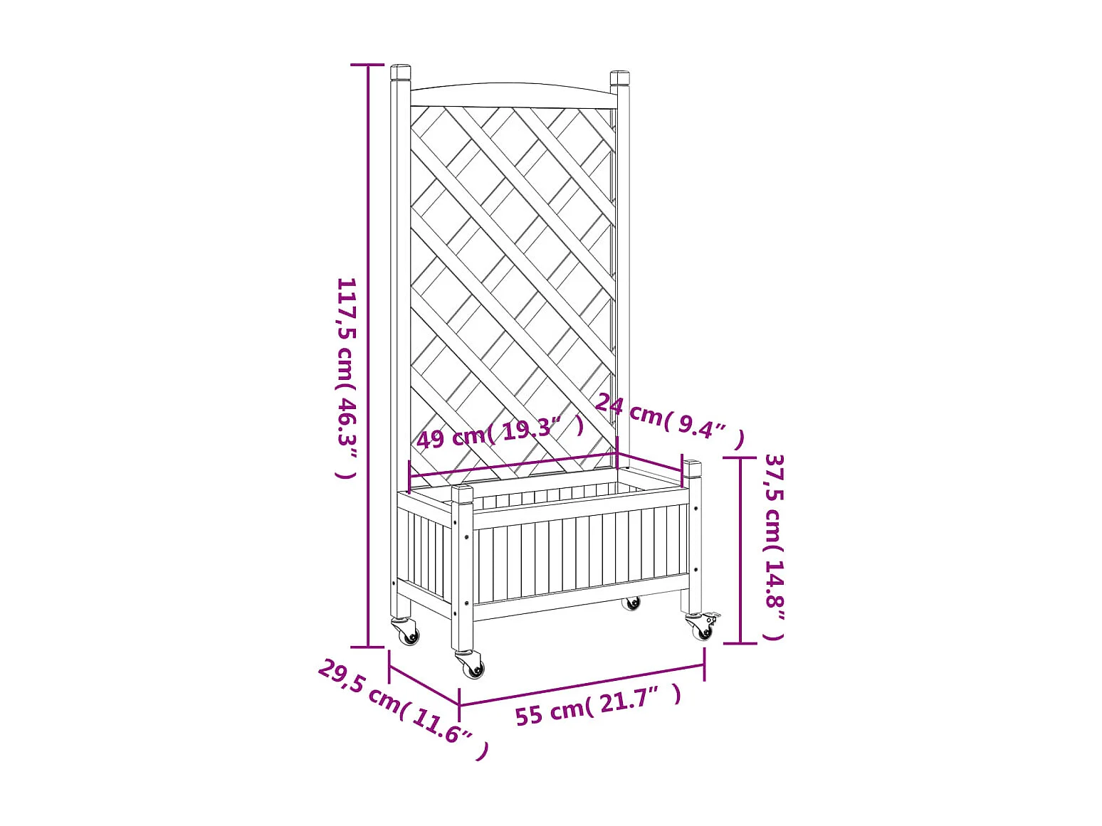 Jardinera con enrejado y ruedas madera maciza de abeto negro